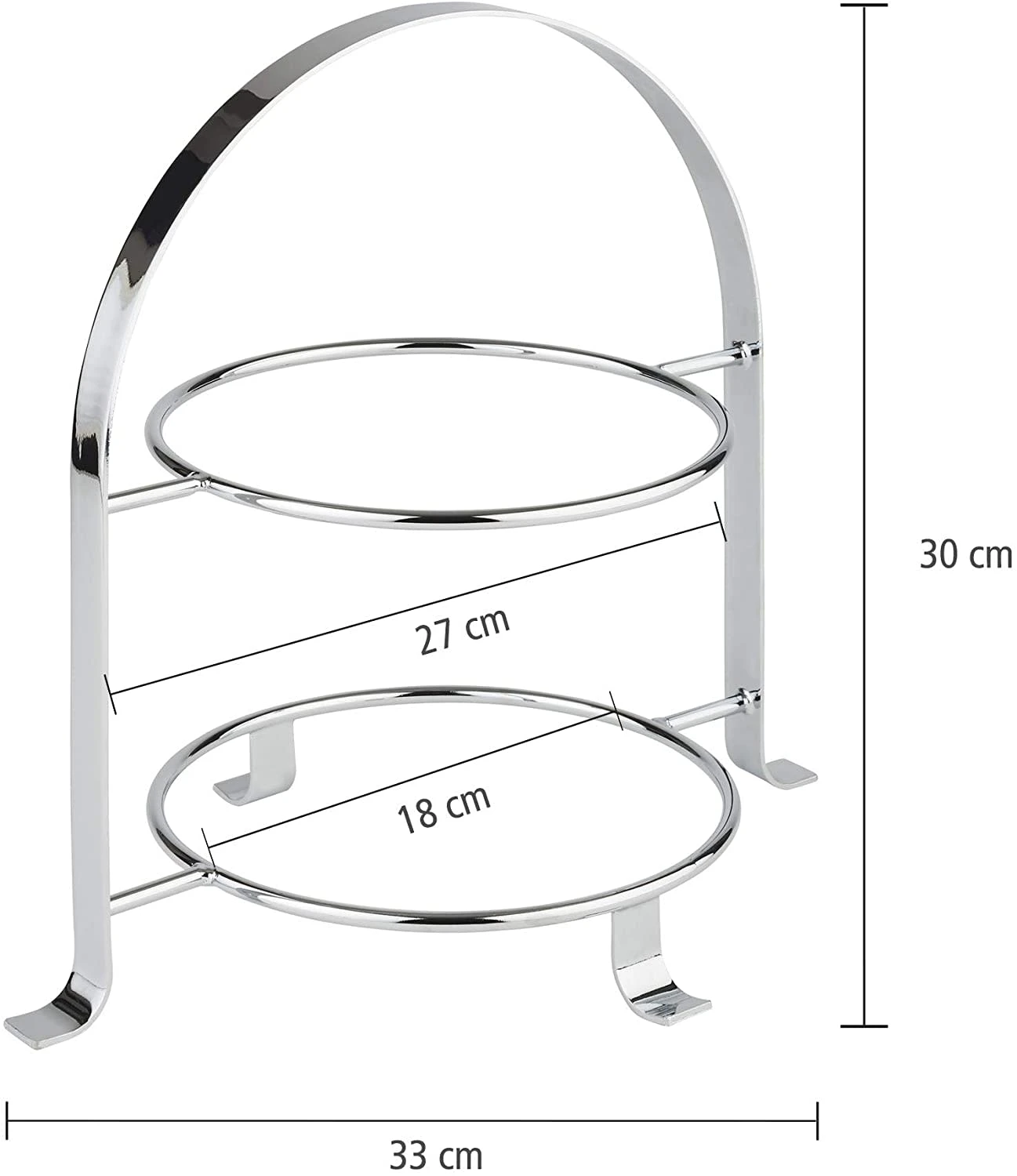 33 x 23,5 cm, H: 30 cm Metall hartverchromt für 2 Teller innerer Ring ca. Ø 18 cm für Teller bis max. Ø 27 cm