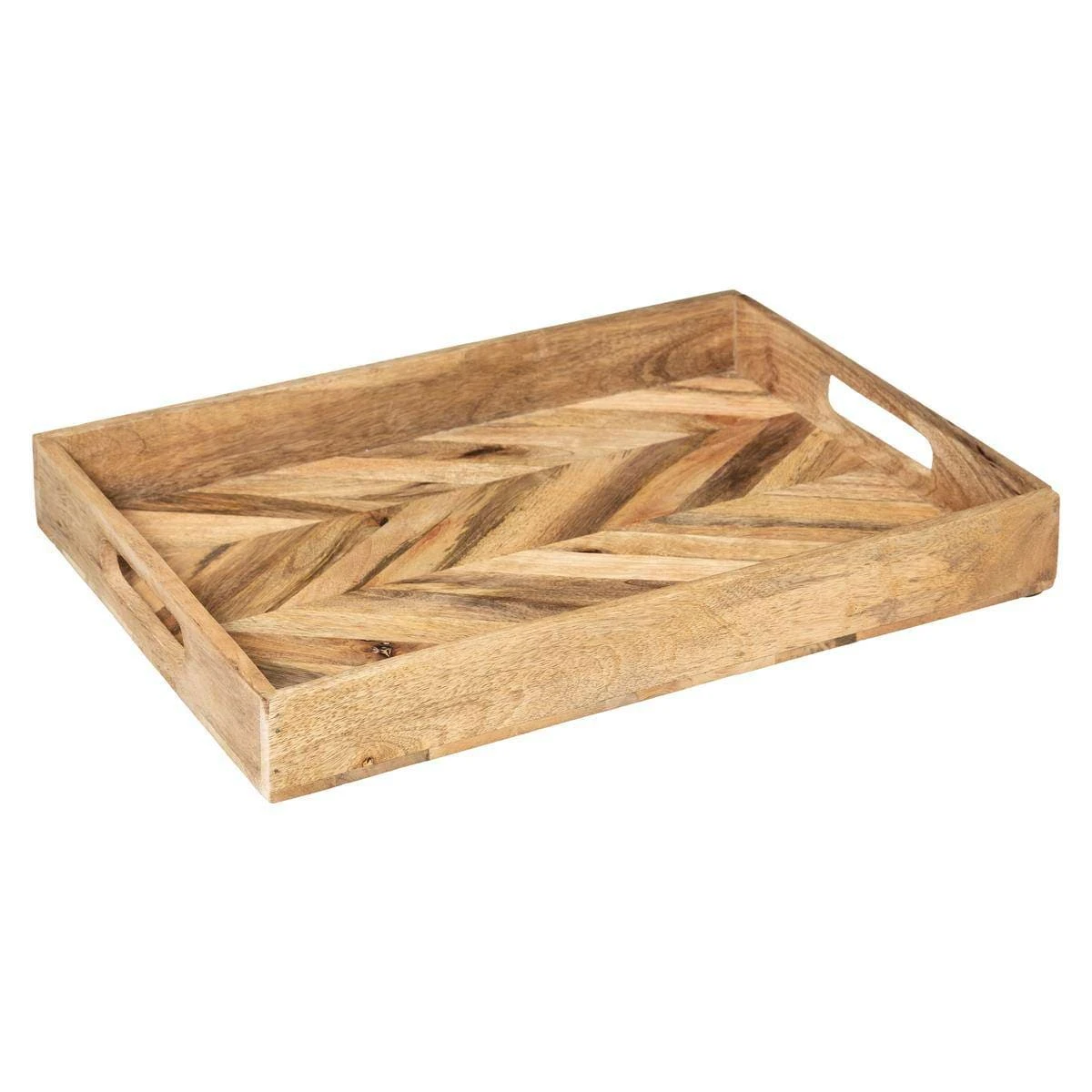 Aber was wäre selbst das funktionale Tablett, wenn es ein wenig gutes Design vermissen würde? Designer der Marke Atmosphera wissen, dass auch ein praktisches Produkt möglichst schön sein und die Sehkraft genießen muss. Aus diesem Grund hat man sich statt des typischen Kunststoffs für Mangoholz entschieden, das über eine reichhaltige Struktur verfügt und nicht nur optisch, sondern auch haptisch überzeugt. Außerdem ist es strapazierfähig und pflegeleicht. Nun, es scheint perfekt für Serviertabletts zu sein.
