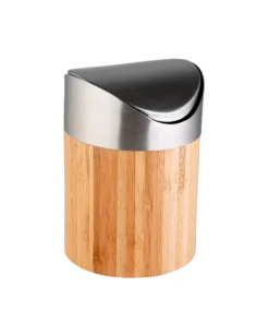 Eleganz in natürlicher Optik: Der attraktive Kosmetikeimer „Bonja“ mit einem Fassungsvermögen von ca. 800 ml macht sich mit seinem modernen Materialmix aus Bambus und Edelstahl in Bad, Haushalt und Büro gut. Der Eimer ist handlich sowie leicht und daher einfach zu versetzen – ideal auch für den Einsatz als Tischabfalleimer, zum Beispiel beim Frühstück.