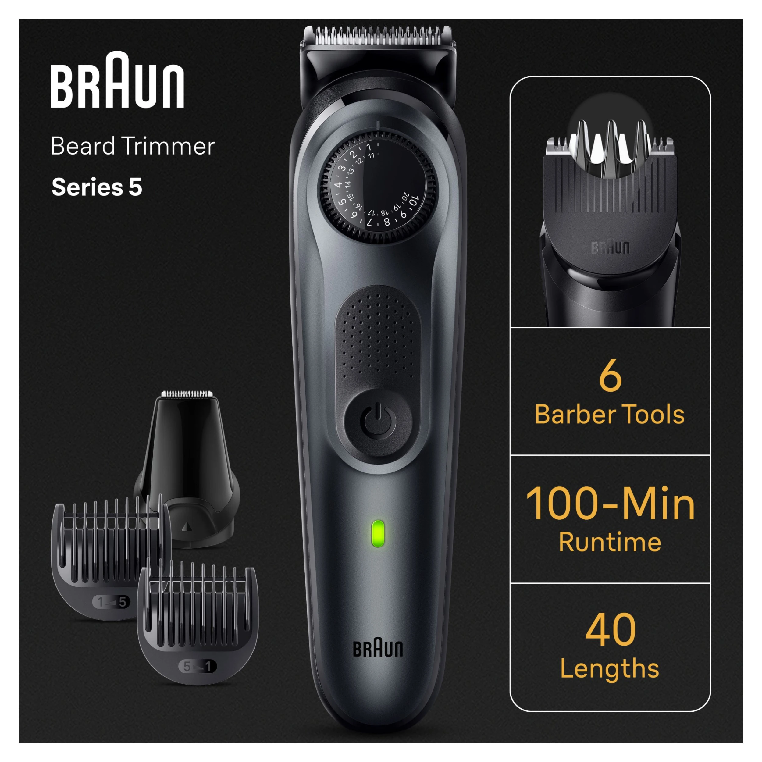 • Für einen Barber Fresh Look jeden Tag: Ultimative Präzision und 100% Kontrolle mit dem Braun Series 5 Barttrimmer