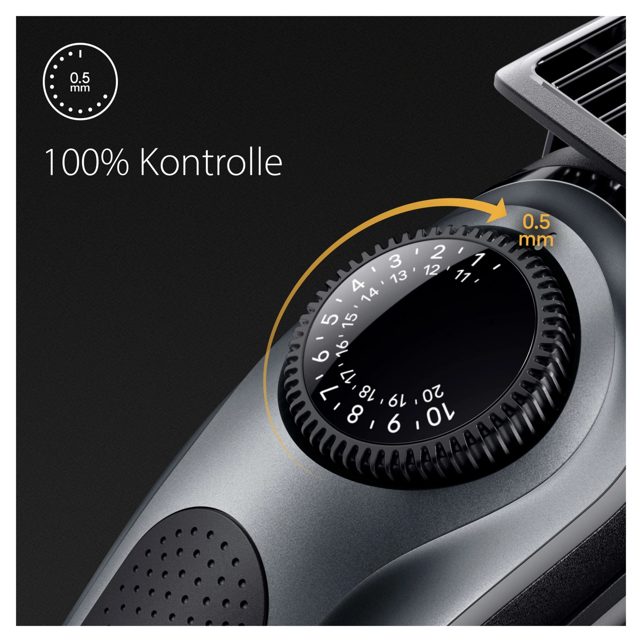 • 100% Kontrolle in Ihren Händen: Wählen Sie aus 40 Längeneinstellungen in präzisen 0,5-mm-Schritten mit dem Präzisionsrad
