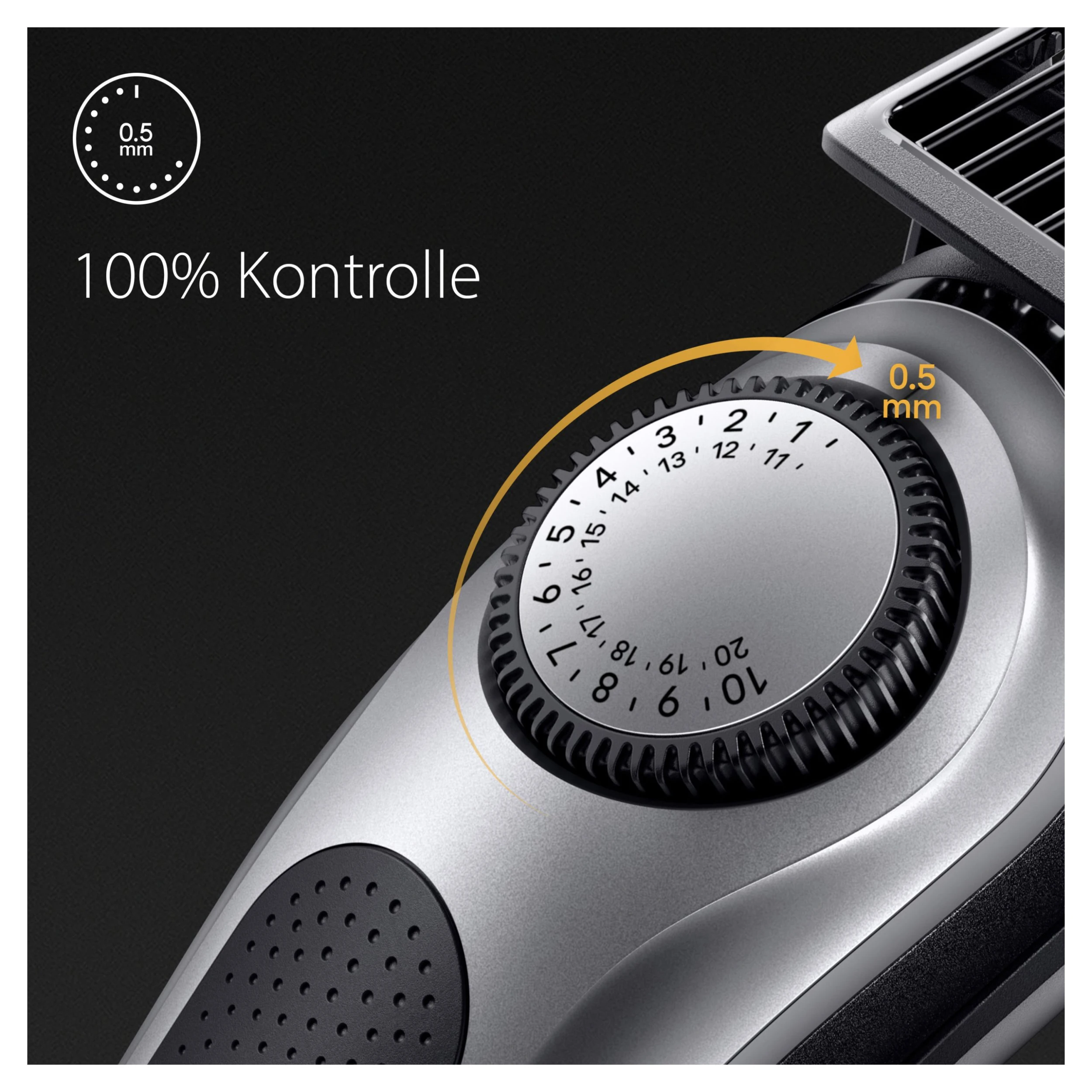 • 100% Kontrolle in Ihren Händen: wählen Sie aus 40 Längeneinstellungen in präzisen 0,5-mm-Schritten mit dem Präzisionsrad