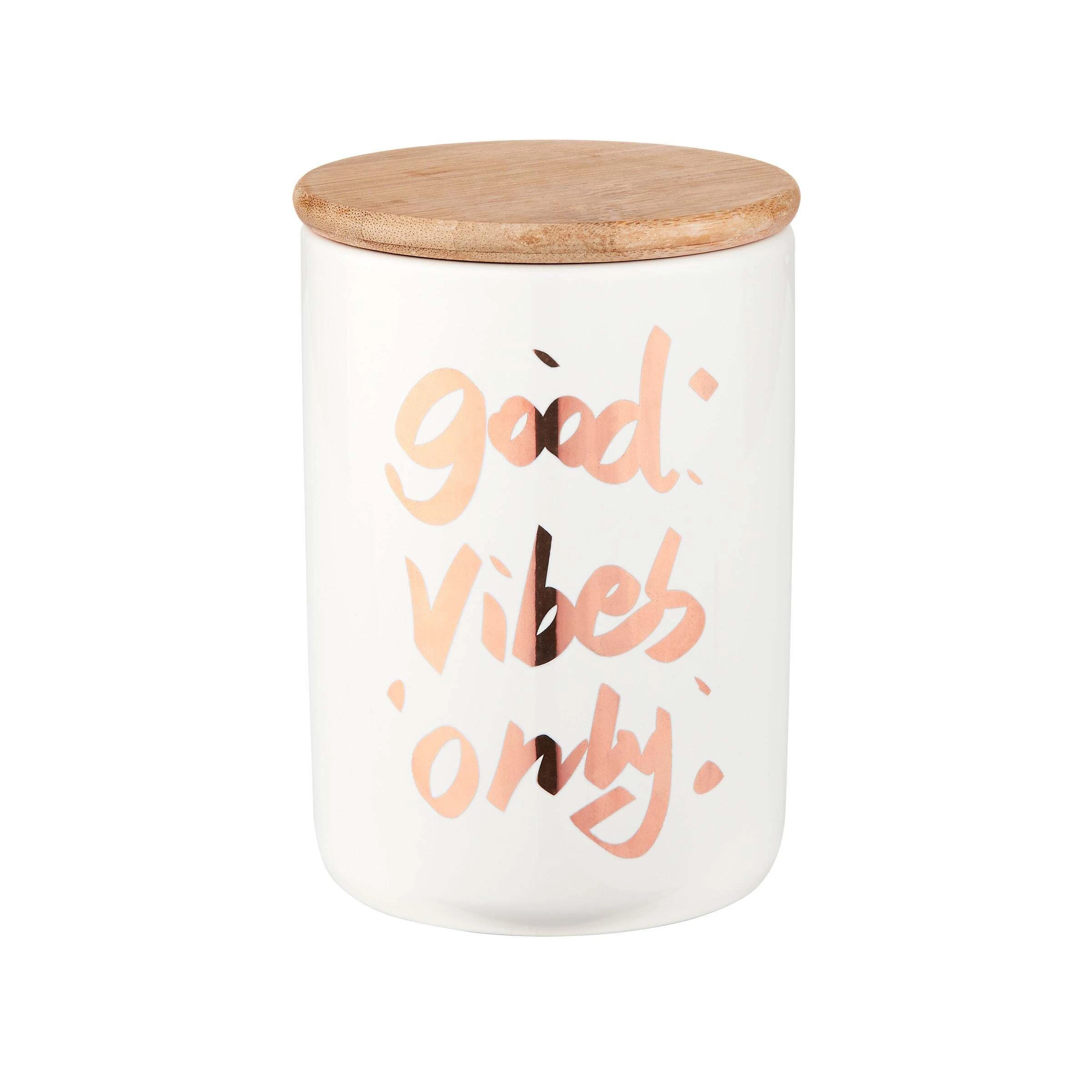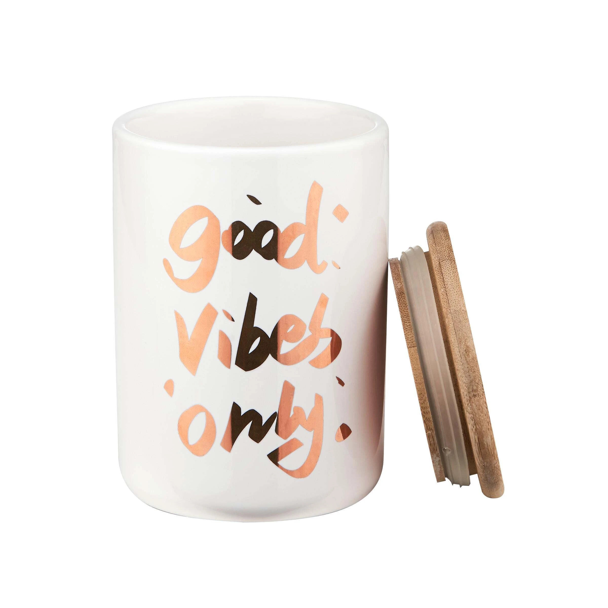 Die Königin unter den Aufbewahrungsdosen heißt Queen it. Optisch regiert das moderne Design mit dekorativem Good-Vibes-Schriftzug, praktisch nimmt der Bambus-Deckel mit Silikondichtung alle möglichen Inhalte schützend unter seine Fittiche. Verschiedene Größen und Varianten erhältlich, die sich prächtig im Badezimmer oder in der Küche, im Regal und auf dem gedeckten Tisch kombinieren lassen.