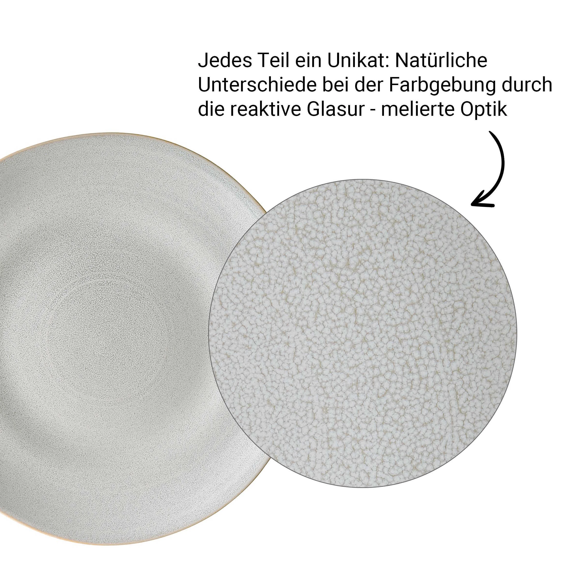 Handgetöpferter, natürlicher Look und zeitlose Farbgebung: Mit unserer Geschirrserie Manor in organischen Formen und klaren Farben bringen Sie den modernen Landhausstil auf Ihren gedeckten Tisch. Dabei besticht die Serie – wie hier die formschöne Schale – mit naturverbundenem Charme, der sich auch hervorragend mit anderen Stilen kombinieren lässt. Durch die reaktive Glasur entsteht zudem ein besonderer Farbverlauf, der jedes Teil der Serie zum echten Unikat macht. Die hochwertige Verarbeitung sorgt überdies dafür, dass Manor das perfekte Geschirr für den täglichen Gebrauch ist.