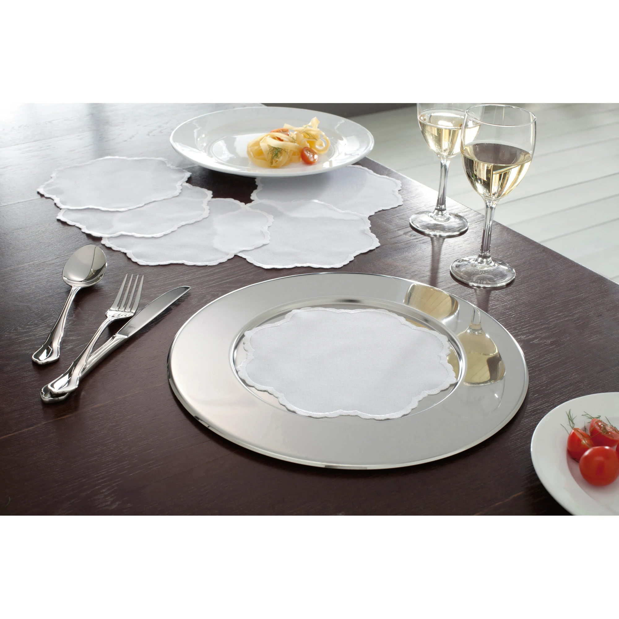 Platzteller. Der klassische Platzteller erfreut durch seine Vielseitigkeit. Denn er wird auch als Serviertablett, Häppchen- oder Plätzchenteller zum eleganten Blickfang. Ø ca. 31 cm. Aus rostfreiem Edelstahl. Spülmaschinengeeignet.