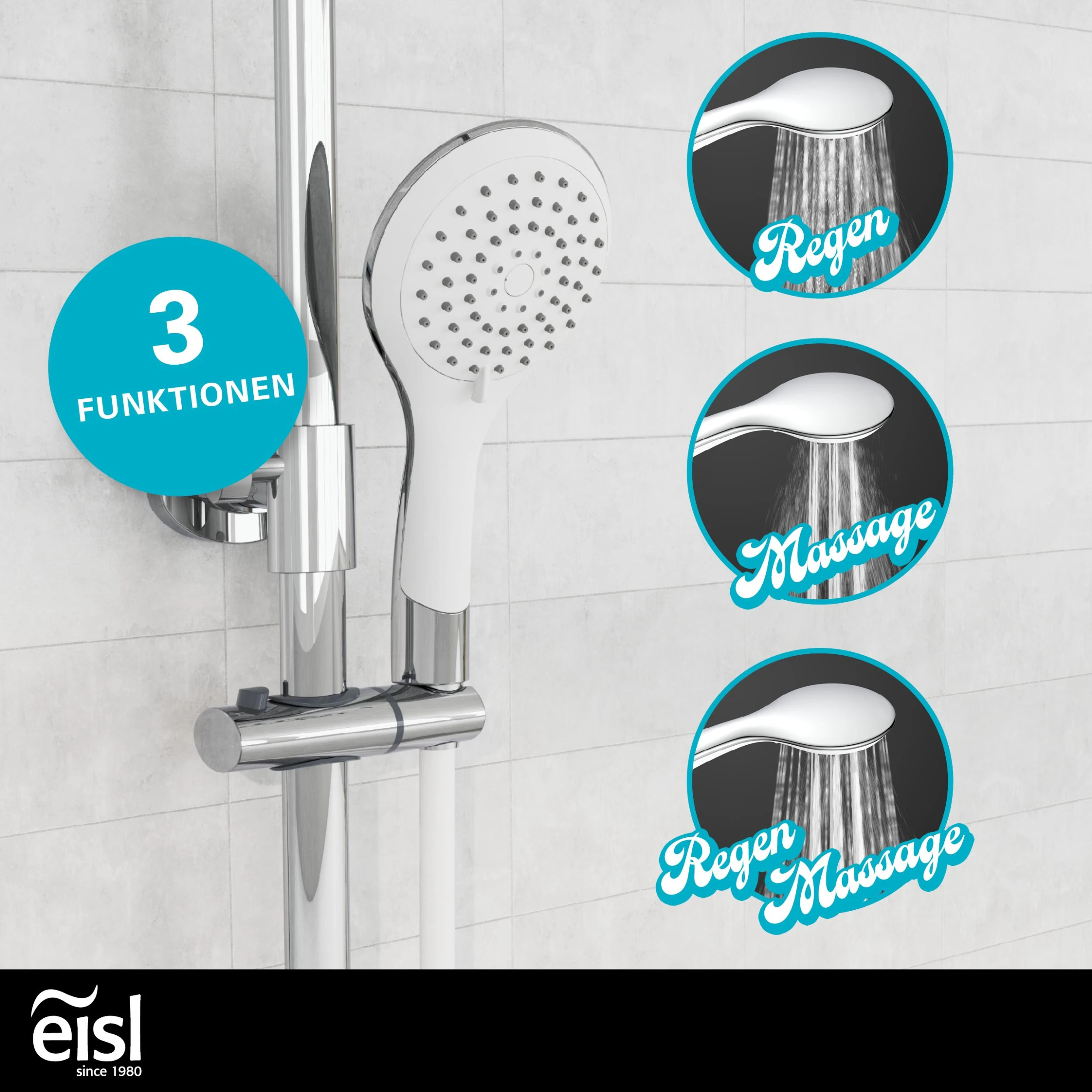Das EISL Duschsystem GRANDE VITA im trendstarken Design Chrom/Weiß ist die perfekte Ergänzung für das moderne Bad.