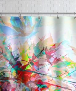 Juniqe Duschvorhang “Bamboo Birds And Blossom Mint” In Grün & Rosa
