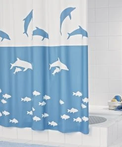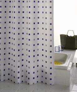 RIDDER Duschvorhang Textil Domino Inkl. Ringe Blau 180×200 Cm