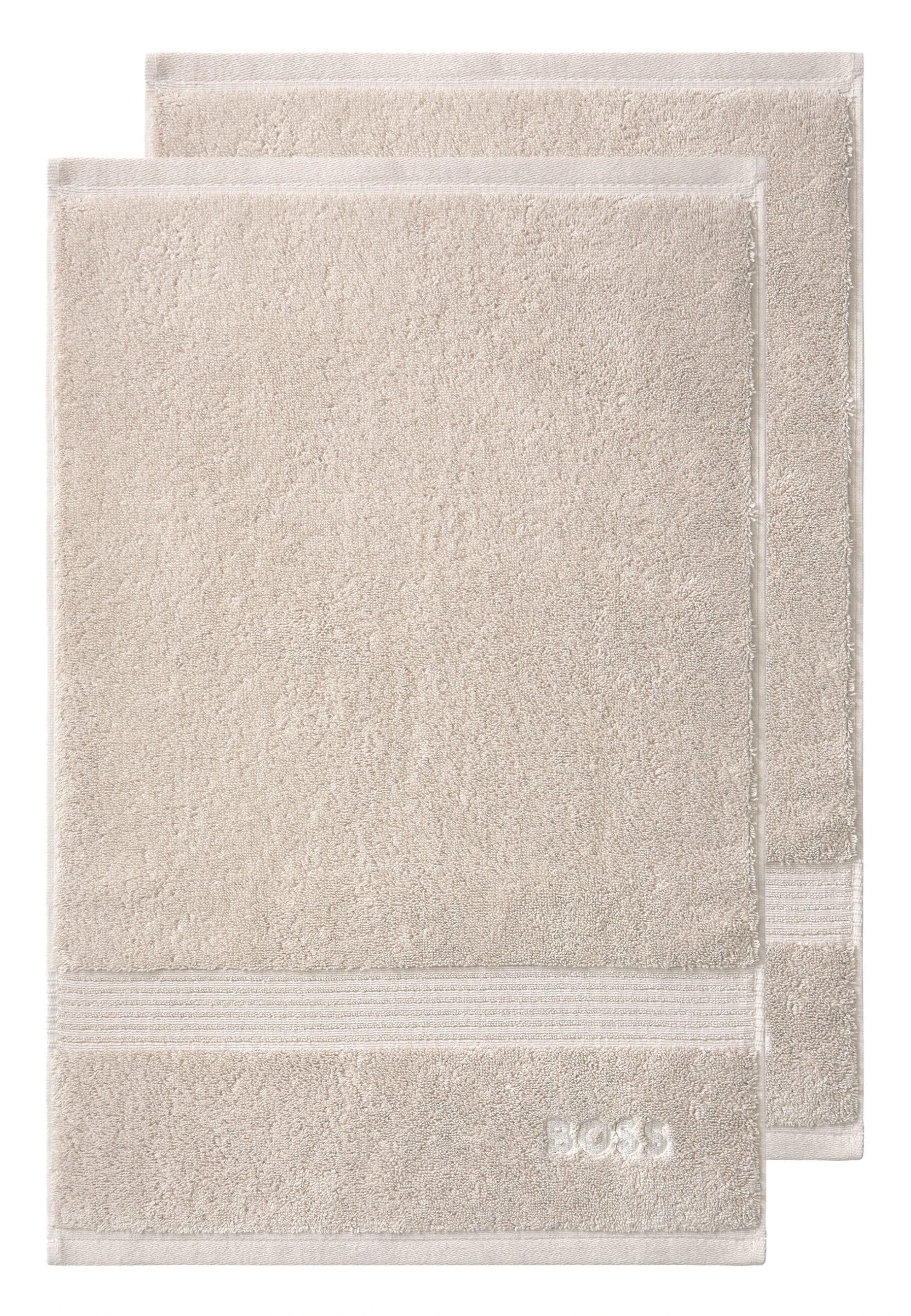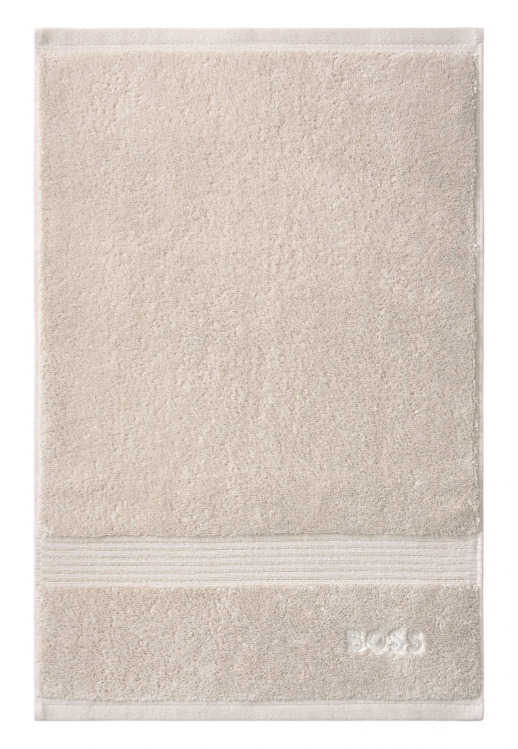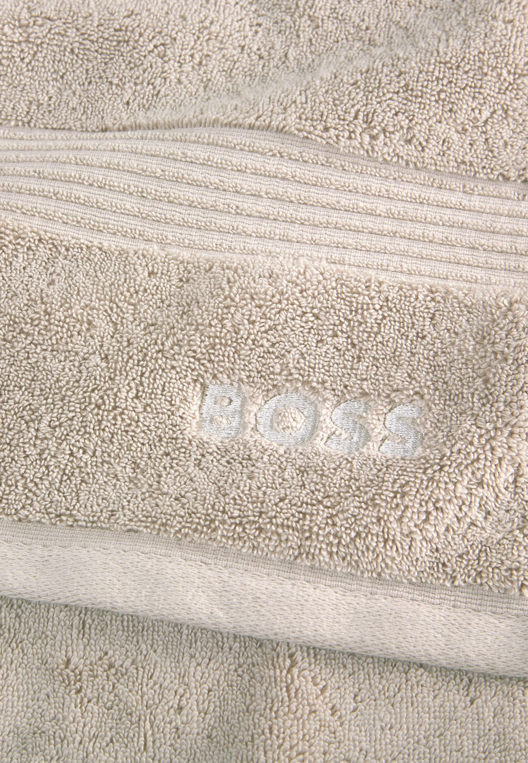 Edles BOSS Gästetuch LOFT aus gekämmter ägäischer Baumwolle. Das Bad-Accessoire bleibt dauerhaft weich und saugfähig. Es präsentiert sich mit einer puristischen Bordüre sowie einer Ton in Ton gehaltenen Logo-Stickerei. Setzen Sie auf dieses luxuriöse Set für einen modernen Look in Ihrem Badezimmer.