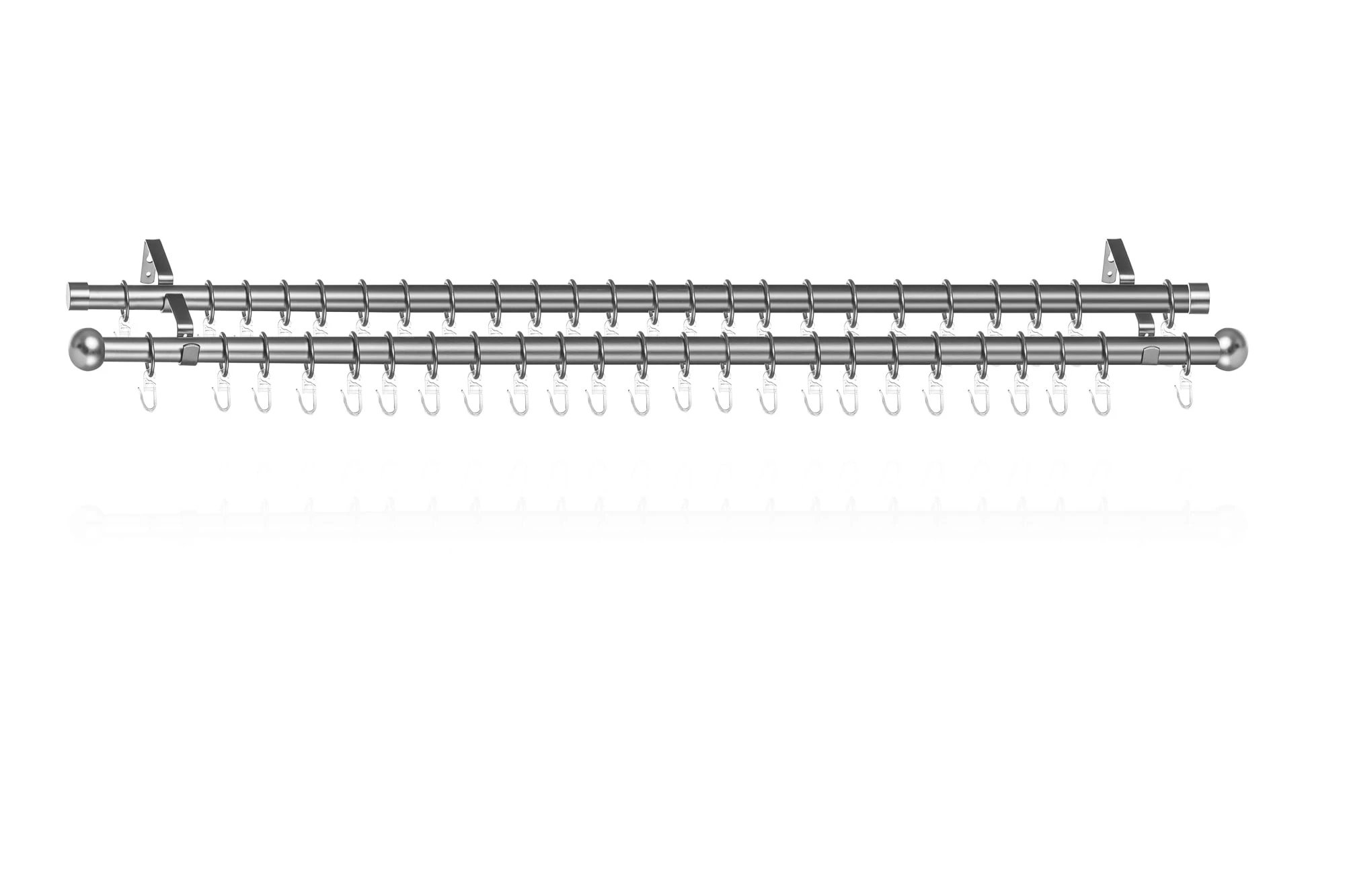 – Stangen, Träger und Endstücke aus stabilem Metall, selbst schwere Stoffvorhänge können problemlos aufgehängt werden