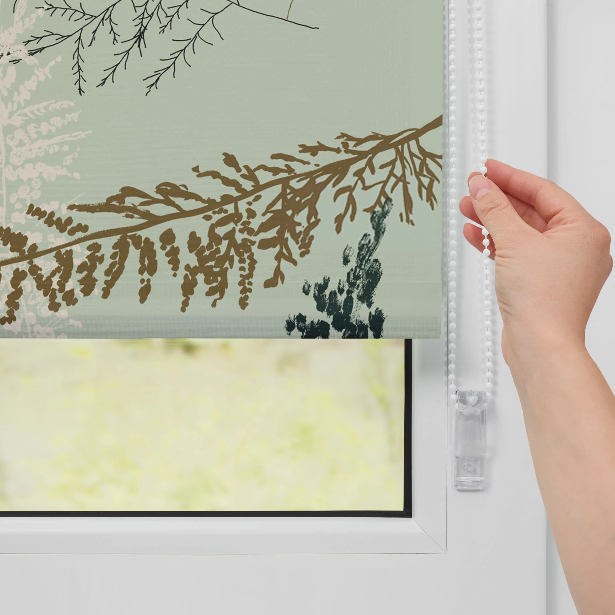 Vom Winde verweht und eins mit der Natur – so scheint das Motiv „Fir Branches“ zu beeindrucken. Durch verschiedene, aber dennoch ruhige Farbtöne strahlt das Kunstwerk am Fenster als Rollo eine ruhige und sanfte Atmosphäre aus. Die Textildesignerin Julia Schumacher lässt sich durch Kunstausstellungen und Poesie inspirieren, welches auch in diesem Motiv ersichtlich wird.