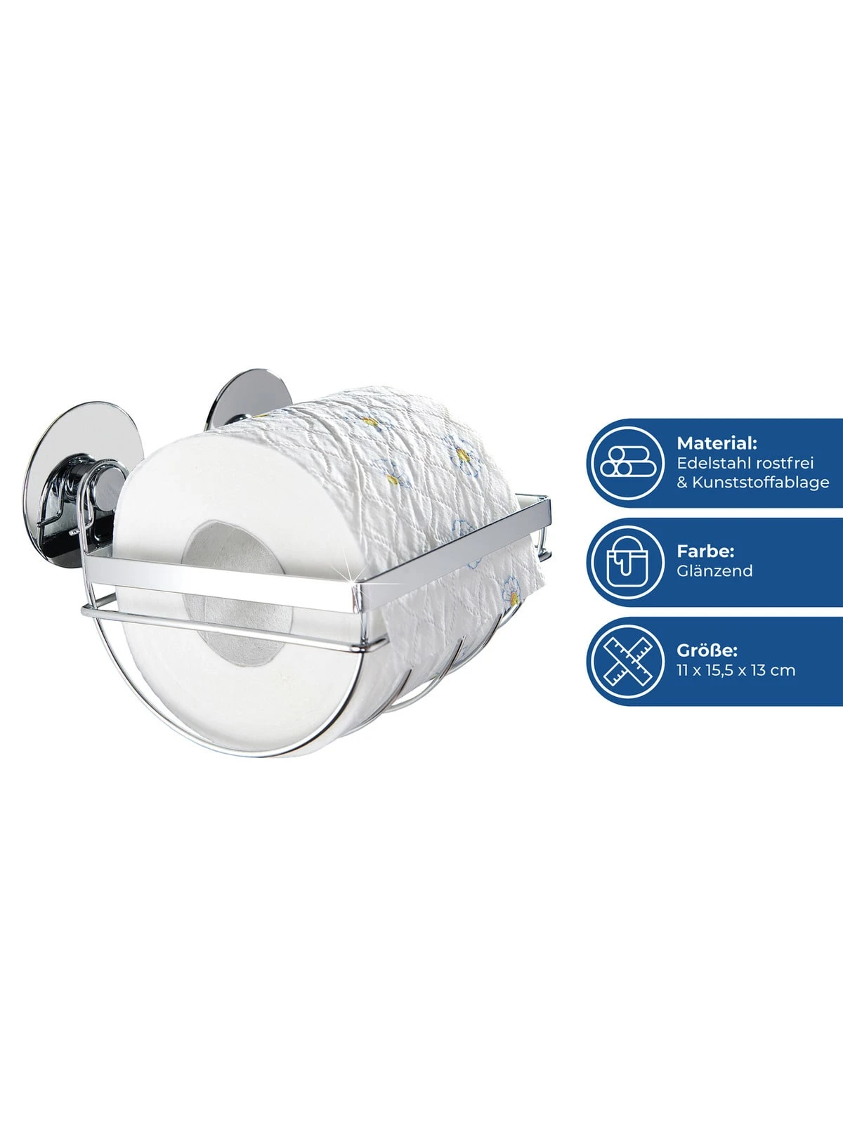 Der hochwertig verarbeitete WC-Rollenhalter aus der Befestigungs-Serie TurboFIX in edler Ausführung ist aus rostfreiem, glänzendem Edelstahl gefertigt und hat eine offene Form.