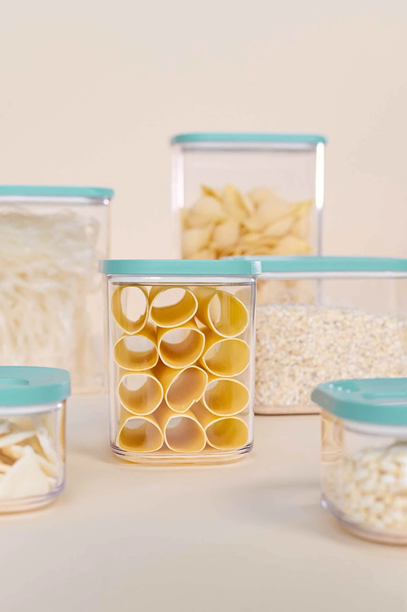 Der transparente Deckel mit farbigem Rand und Dichtungsring sorgt für einen perfekten Verschluss, wodurch diese Vorratsdose ideal geeignet ist für die Aufbewahrung von trockenen Lebensmitteln wie z.B. Rosinen, Nüsse oder Süßigkeiten. Die Modula Vorrats- und Aufbewahrungsdosen gibt es in verschiedenen Größen und Ausführungen, liegen gut in der Hand und sind leicht zu öffnen. Desweiteren sind die Dosen stapelbar und spülmaschinenfest.