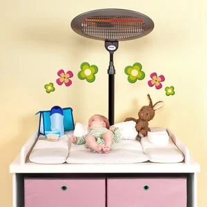 Babys mögen es warm. Damit sich der Nachwuchs auch beim Windelnwechseln auf dem Wickeltisch behaglich fühlt und nicht erkältet, sorgt der Wickeltischheizstrahler mit Standfuß von reer für gleichmäßige Wärme. Wickeltischheizstrahler mit Standfuß Material: Metall, Kunststoff 45° schwenkbares Gehäuse mit Zugschalter auswechselbarer Sicherheits-Heizstab mit Drahtgeflecht und Splitterschutz tropfwassergeschütztes Gehäuse und Gummikabel 230 V, 650 W Maße: Ø 50 cm, 1,48 m (unausgezogen) 2,10 m (ausgezogen) lang Praktischerweise muss der Wickeltischheizstrahler von reer nicht an der Wand befestigt werden, da er mit einem praktischen Standfuß ausgestattet ist. Dank des Teleskopstabes lässt er sich in seiner Höhe individuell variieren und so optimal auf den Wickeltisch abstimmen. Das tropfwassergeschütze Gehäuse und das Gummikabel bieten Groß und Klein Sicherheit. Der Sicherheitsheizstab ist auswechselbar und mit einem Drahtgeflecht sowie einem Splitterschutz versehen. Das um 45 Grad schwenkbare Gehäuse ist mit einem praktischen Zugschalter ausgestattet. Schließlich sollte die Aufmerksamkeit bei den Kleinen liegen.