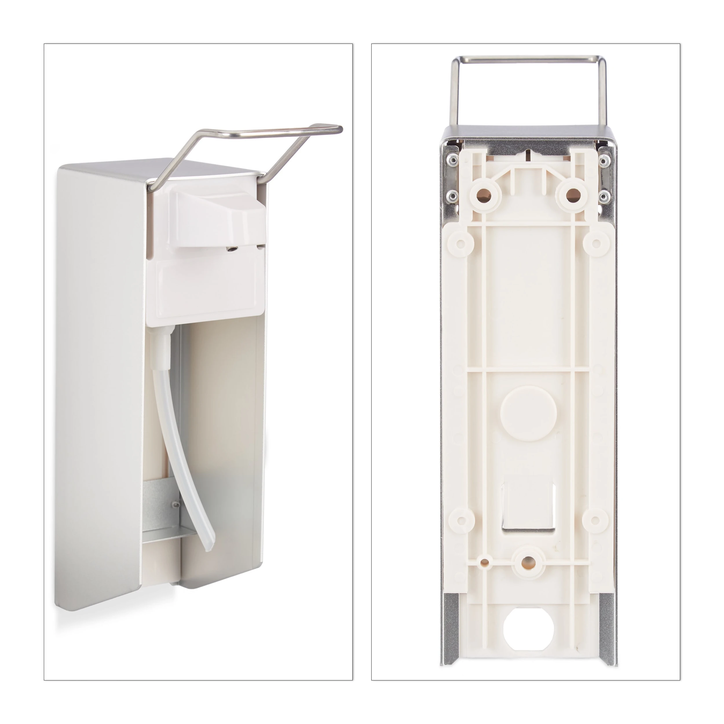 Ein Seifenspender wird in vielen Räumlichkeiten im Alltag gebraucht. Denn Bakterien lauern überall. Der Wandspender sorgt für einen besonders hygienischen Waschvorgang der Hände. Lösen Sie den Pumpmechanismus per Ellbogen oder Unterarm aus und vermeiden Sie direkten Kontakt mit Ihren Händen. Mit wenigen Handgriffen ist der Spender dazu mit Flüssigseife oder Desinfektionsmittel befüllt. Das schlichte und funktionale Design macht ihn zu einem Allrounder für den Einsatz zu Hause oder in der Gastronomie sowie am Arbeitsplatz.