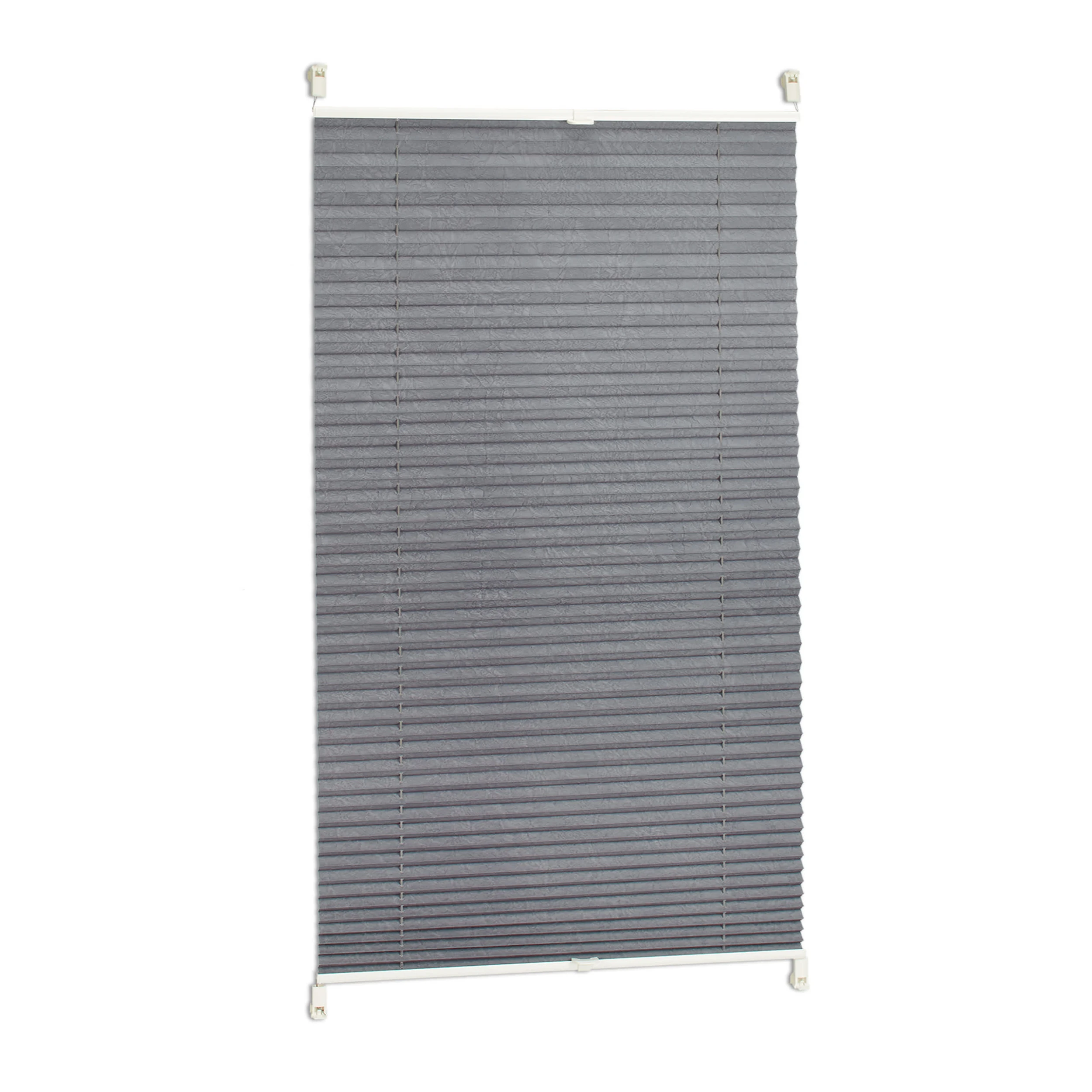 Mit diesen schönen grauen Plissees verhindern Sie neugierige Blicke Ihrer Nachbarn ohne Ihre Zimmer ungemütlich zu verdunkeln. Die Faltstores sind stufenlos einstellbar – schieben Sie sie mit den 2 praktischen Griffen einfach auf die gewünschte Höhe. Die Montage ist kinderleicht und geht schnell von der Hand. Klemmen Sie die Rollos einfach am Fenster fest und fixieren Sie sie mit den mitgelieferten Klebepads.