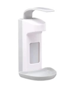 Mit diesem Desinfektionsspender sind Seife und Desinfektionsmittel für Ihre Gäste und Patienten stets griffbereit. Dank der Tropfschale bildet sich am Boden keine Pfütze aus schmieriger Seife, sondern sammelt überschüssige Seife sauber und hygienisch. In die Leerflasche des Eurospenders passen 500 ml Flüssigkeit, die mit dem Armhebel durch einen Pumpmechanismus genutzt werden können. Das Material für die Wandmontage ist inklusive – für eine schnelle und einfache Anbringung.