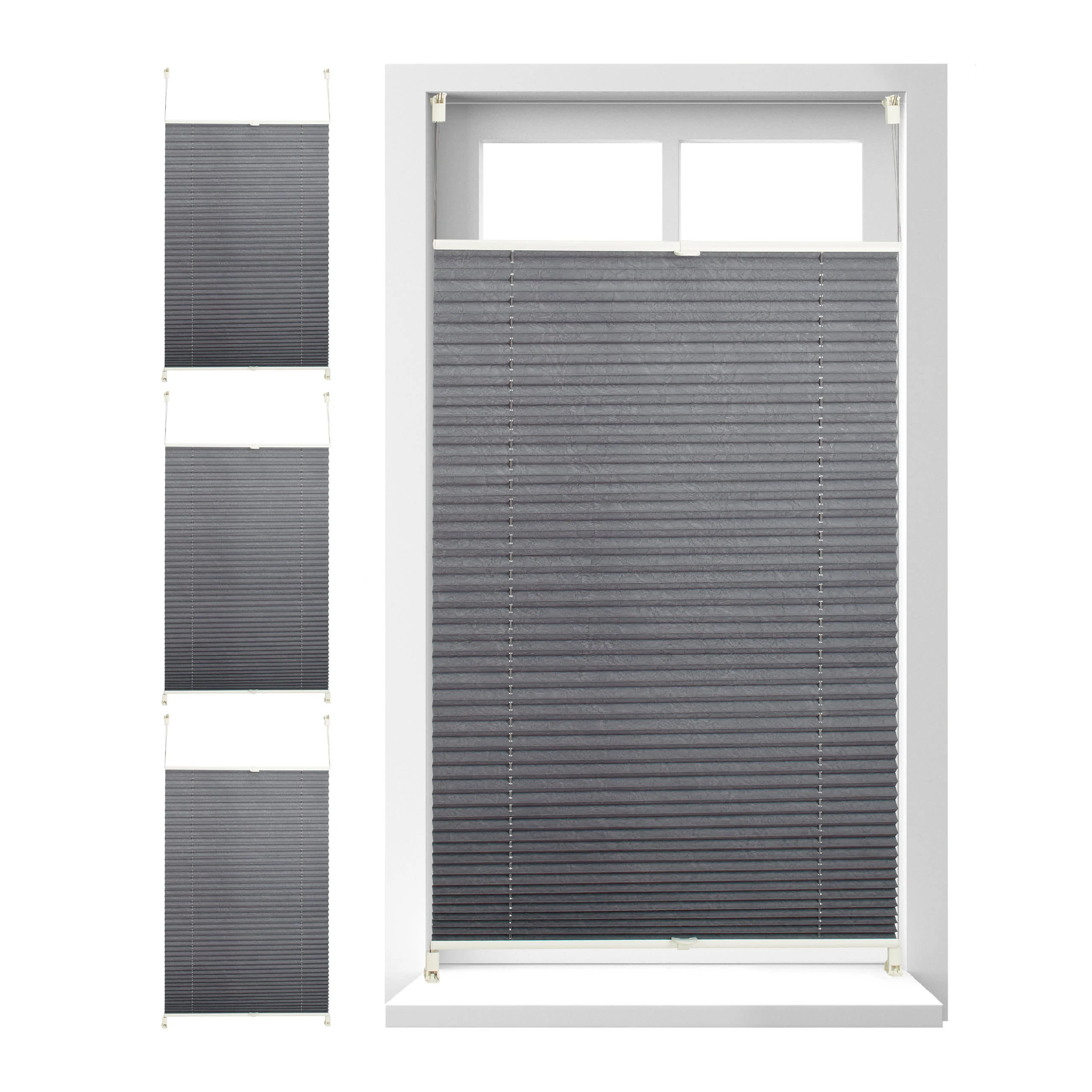 Mit diesen schönen grauen Plissees verhindern Sie neugierige Blicke Ihrer Nachbarn ohne Ihre Zimmer ungemütlich zu verdunkeln. Die Faltstores sind stufenlos einstellbar – schieben Sie sie mit den 2 praktischen Griffen einfach auf die gewünschte Höhe. Die Montage ist kinderleicht und geht schnell von der Hand. Klemmen Sie die Rollos einfach am Fenster fest und fixieren Sie sie mit den mitgelieferten Klebepads.