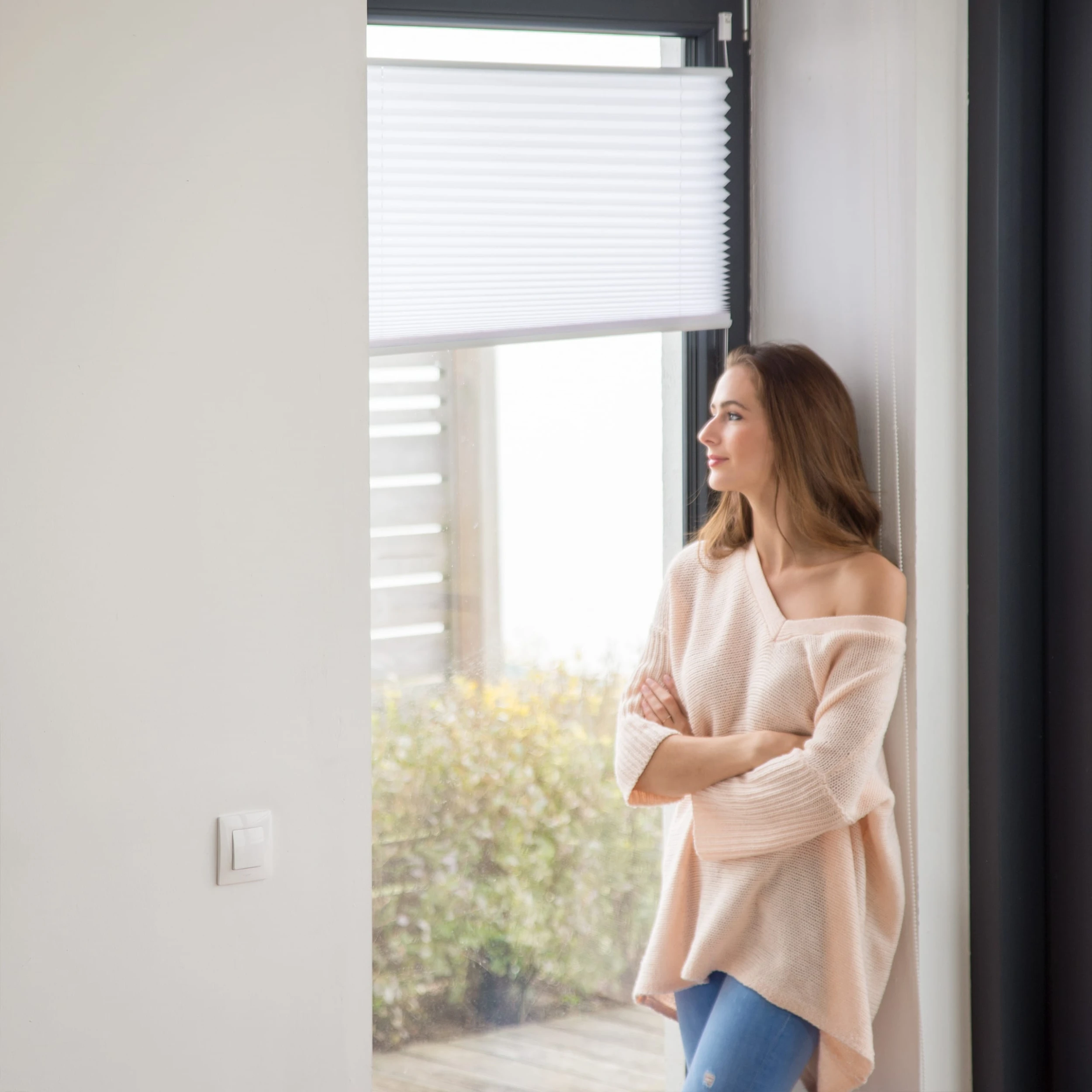 Mit diesen schönen weißen Plissees verhindern Sie neugierige Blicke Ihrer Nachbarn ohne Ihre Zimmer ungemütlich zu verdunkeln. Die Faltstores sind stufenlos einstellbar – schieben Sie sie mit den 2 praktischen Griffen einfach auf die gewünschte Höhe. Die Montage ist kinderleicht und geht schnell von der Hand. Klemmen Sie die Rollos einfach am Fenster fest und fixieren Sie sie mit den mitgelieferten Klebepads.