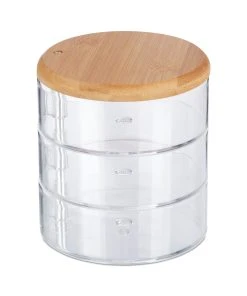 Dieser kompakte Schminkorganizer hilft Ihnen, Lidschatten, Lippenstifte, Puder und mehr geordnet und übersichtlich aufzubewahren. So sorgen Sie für einen aufgeräumten Schminktisch. Auch als Schmuckkasten ist der Organizer ideal. In den 3 Fächern haben Ketten, Armbänder, Ringe und mehr Platz. Die 360 Grad drehbaren Ebenen der Schmuckschatulle ermöglichen Ihnen dabei einen schnellen Zugang. Aufgeklappt bildet die Schminkbox eine ansprechende Treppenform und ist ein Hingucker zu Hause.