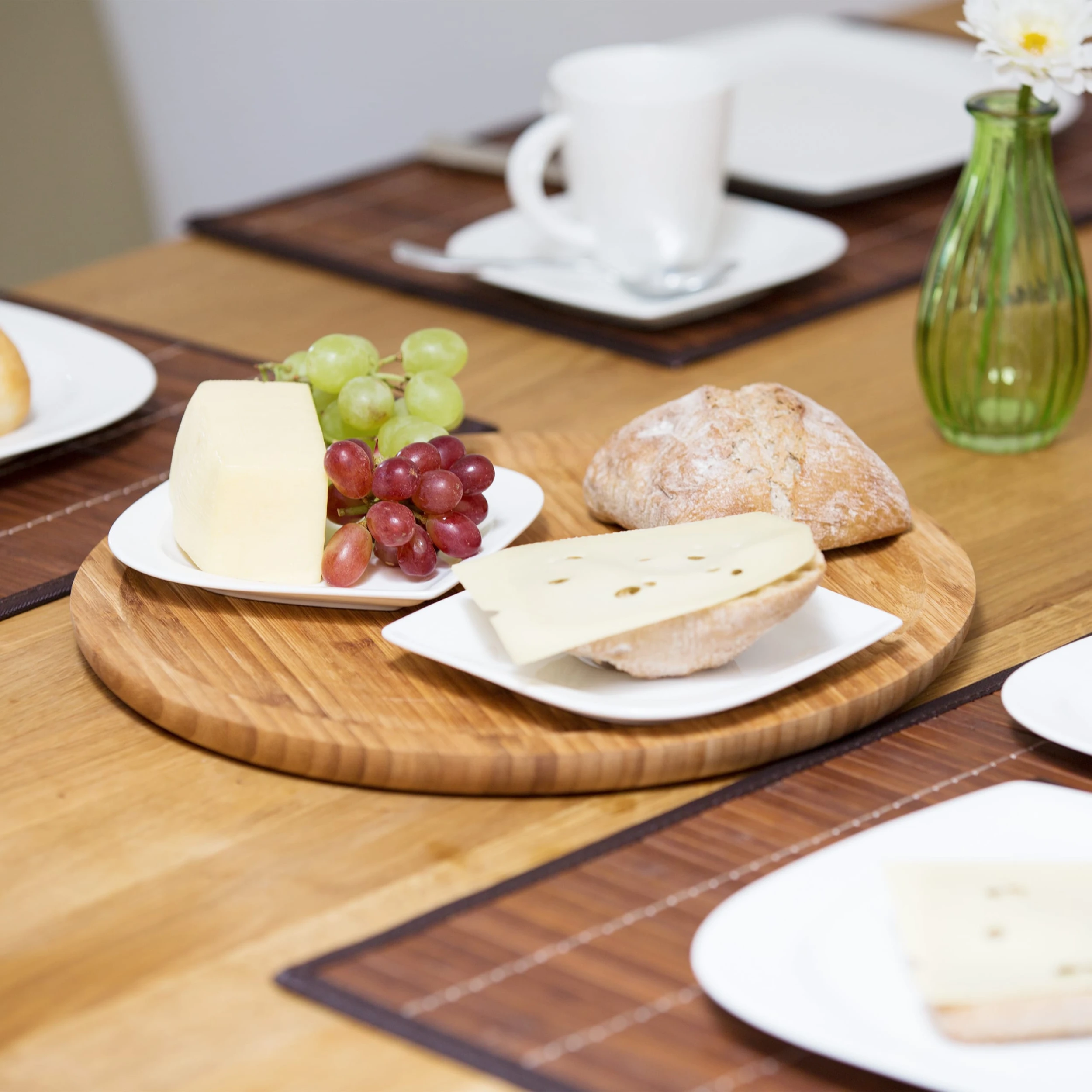 Planen Sie einen Kochabend mit Freunden oder eine Geburtstagsfeier? Die Servierplatte aus Bambus ist Ihnen in jedem Fall eine große Hilfe. Sie eignet sich ideal zum Anrichten von Käse, Obst, Gebäck, Partysnacks uvm. Der gewölbte Rand vermeidet ein Runterfallen der Lebensmittel.