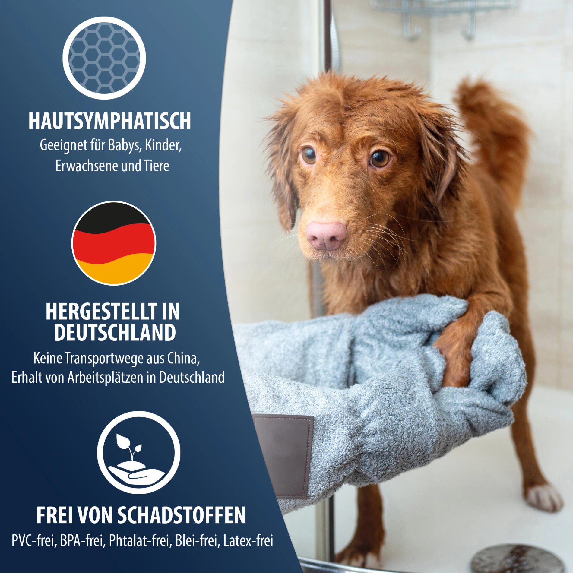 Besonders sicheren Halt bieten unsere Badematten dank einer besonders großen Anzahl an Saugnäpfen und sind so für alle Alters- und Gewichtsklassen, sowie Tiere geeignet.