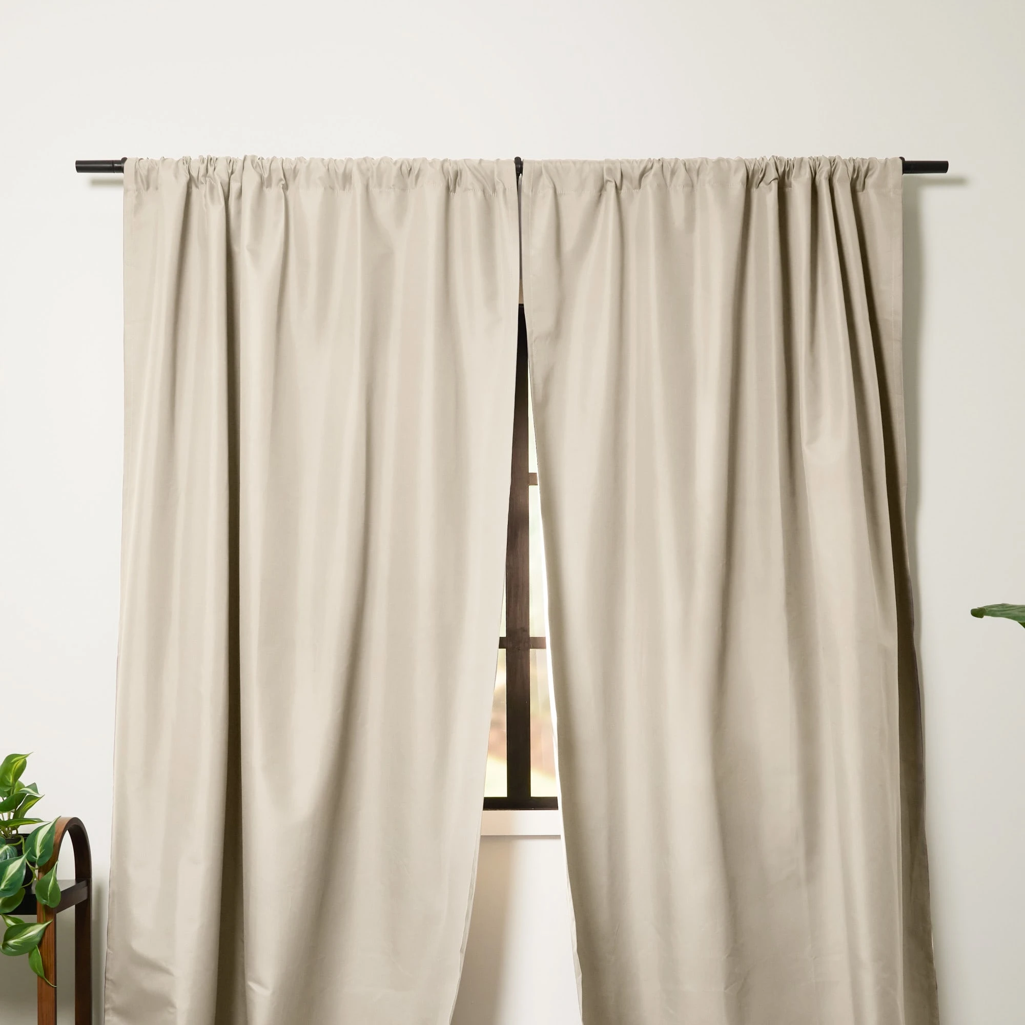 Die aus 100% Polyester gefertigten Vorhänge verfügen über einer Lasche an der Oberseite die dafür sorgt, dass von Oben kein Licht einfallen kann.