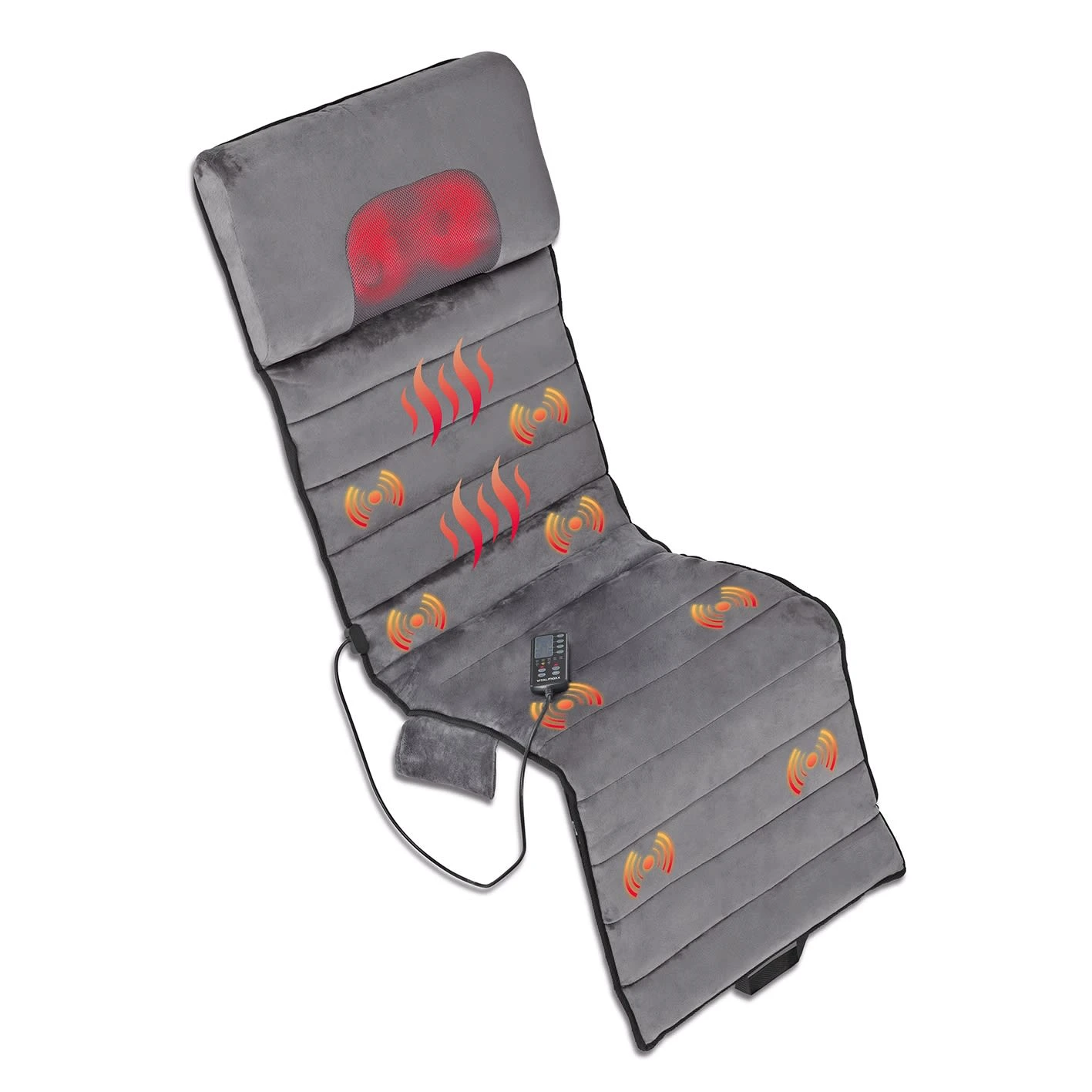 Der herrlich weiche Plüschbezug und das integrierte Kopfkissen der Massagematte sorgen für angenehmen Liegekomfort. Vier rotierende Massageköpfe massieren mit Knet- und Drehbewegungen Ihren Nacken- und Schulterbereich. Für die Körperbereiche Rücken, Hüfte, Oberschenkel und Waden bietet Ihnen die Massagematte eine angenehme Vibrationsmassage.