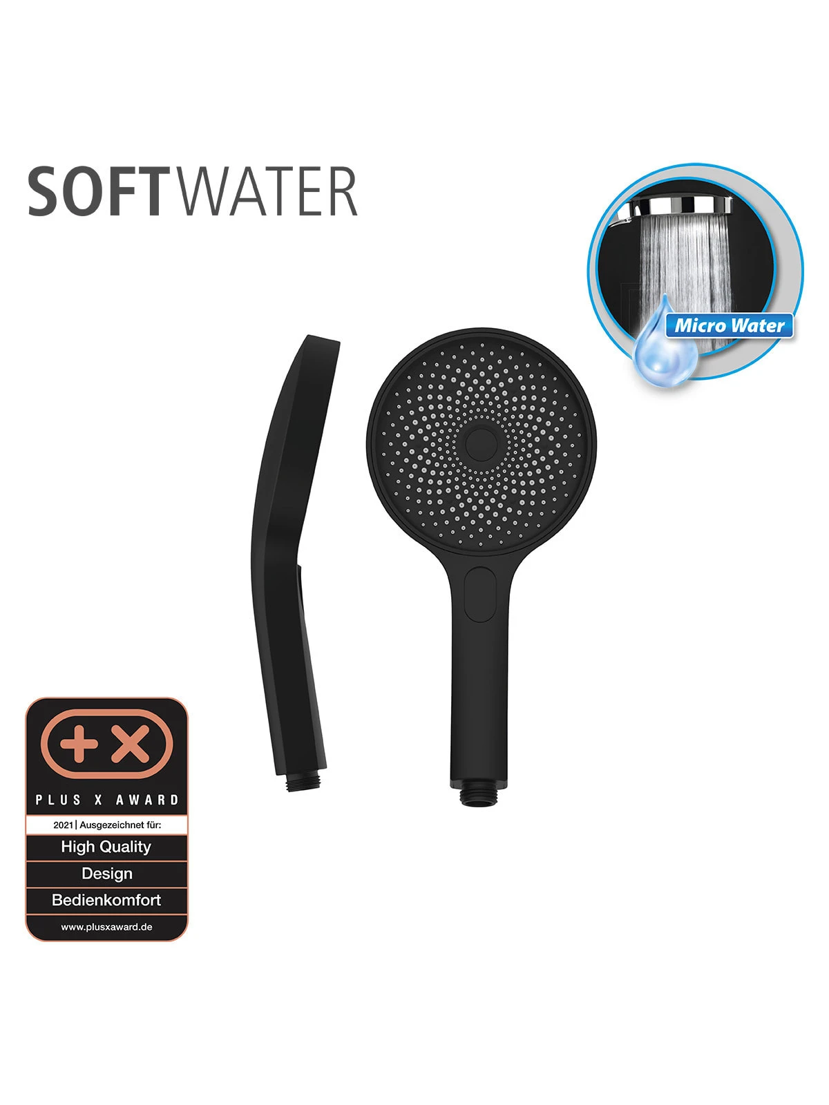 Die Fachjury des Plus X Award hat den WENKO Softwater Duschkopf für 2021 ausgezeichnet. Diese hervorragende Auszeichnung wurde gleich in den drei Kategorien Qualität, Design und Bedienkomfort verliehen.