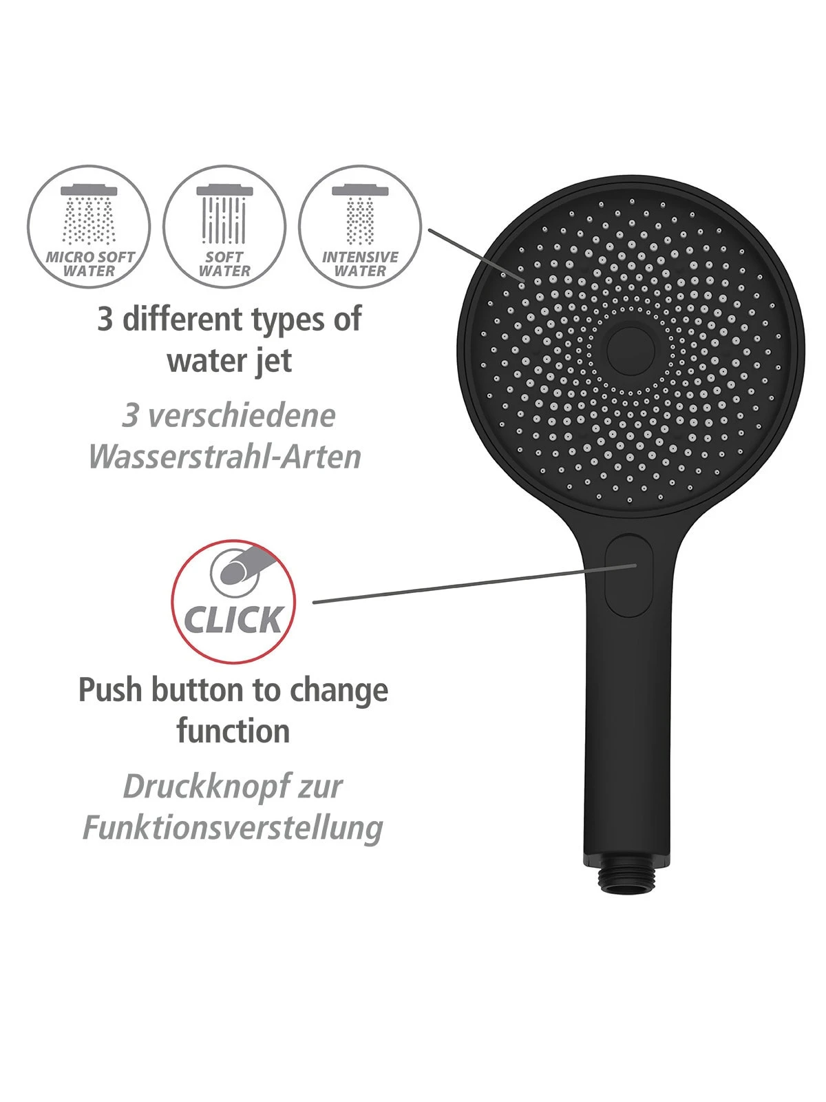 – Handbrause mit 3 Funktionen