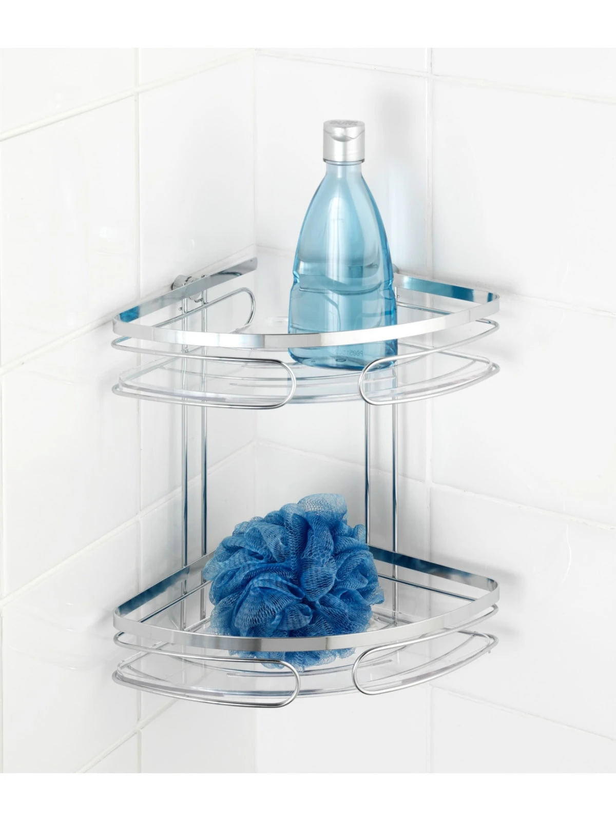 Besonders geeignet ist das praktische Regal mit seinen zwei transparenten Kunststoffablagen für Duschgel- und Shampoo-Flaschen und Schwämme.
