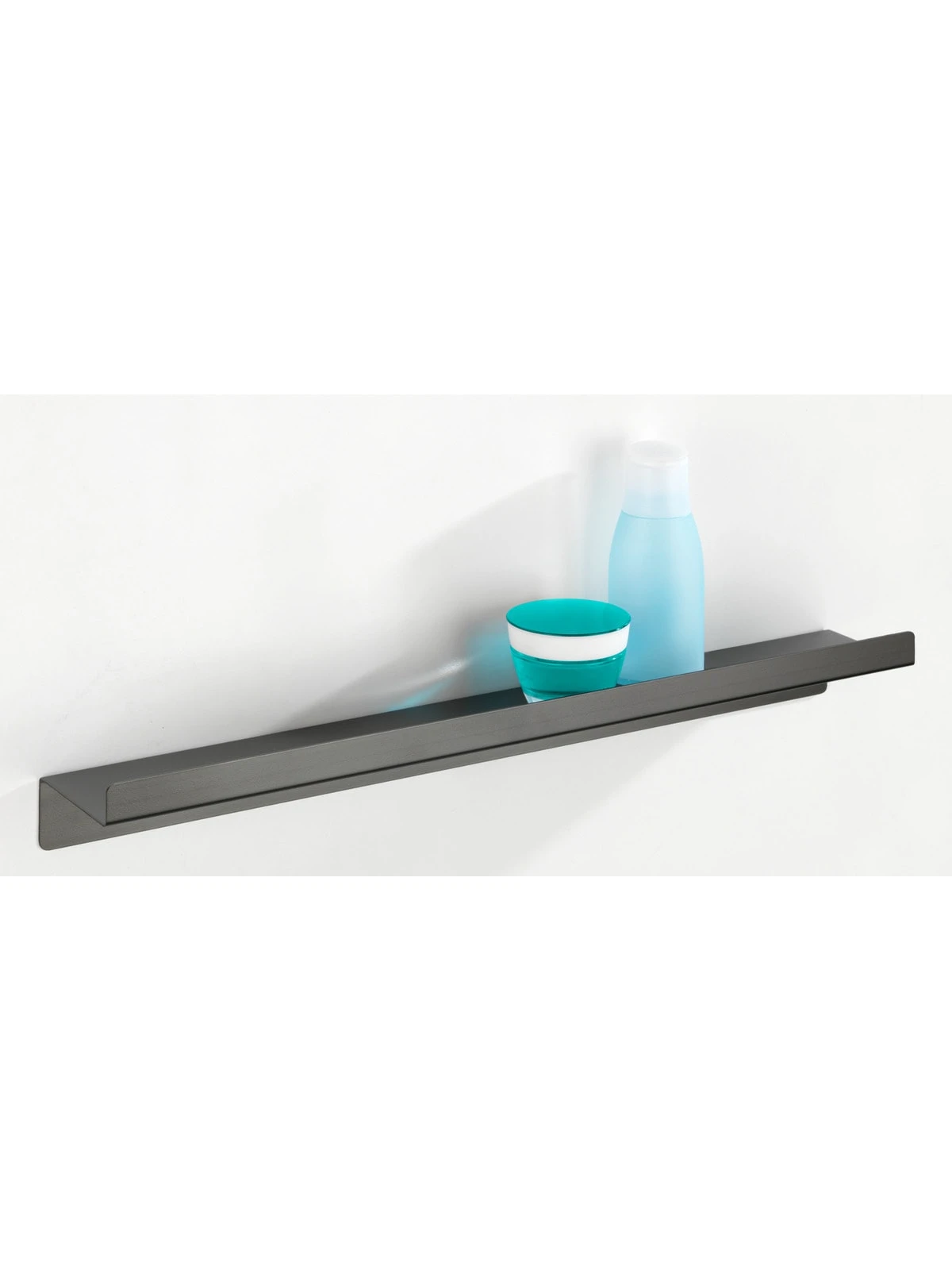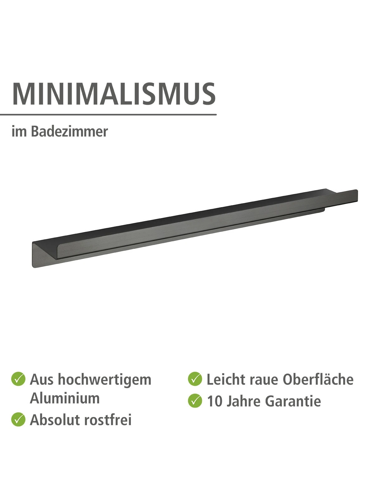 Die dezente Maxiablage der Serie bietet mit einer Länge von 50 cm Platz für Shampoo Flaschen, Kosmetik oder andere Utensilien im Badezimmer.