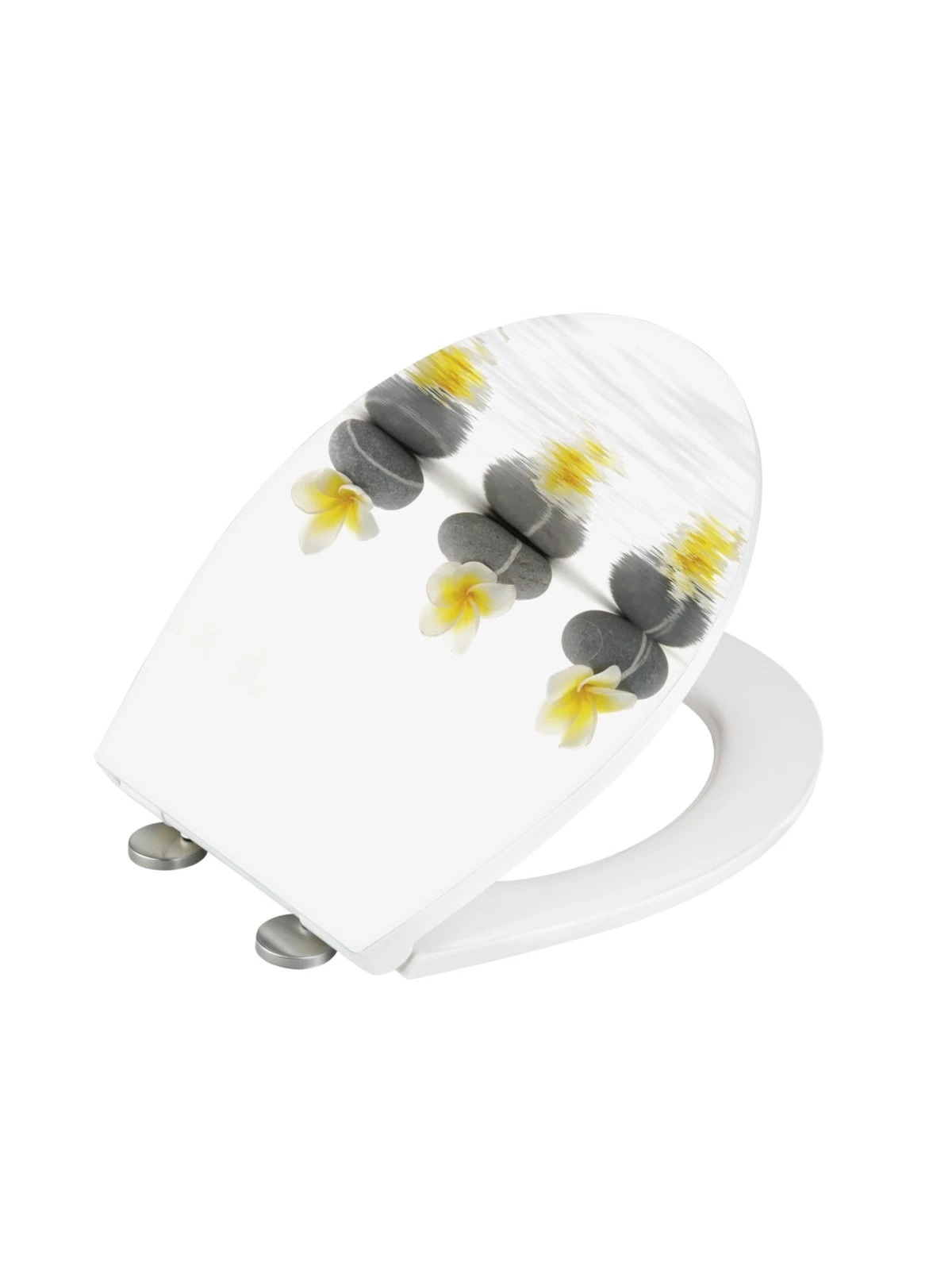 Der ausgefallene WC-Sitz Stones with Flower ist aus hochwertigem Duroplast gefertigt. Dieses Hochleistungsmaterial mit Keramik-Feeling ist der ideale Werkstoff. Bei Duroplast handelt es sich um äußerst bruchsichere Hartplastik mit extrem harter Oberfläche, die diesen WC-Sitz so belastbar, strapazierfähig und langlebig machen. Selbst nach jahrelangem Gebrauch verliert Duroplast nichts von seiner Strahlkraft. Und weil es völlig porenfrei ist, setzt es auch unter hygienischen Gesichtspunkten außergewöhnliche Maßstäbe. Duroplast WC-Sitze enthalten keine umweltgefährdenden Stoffe und sind dadurch hautfreundlich.