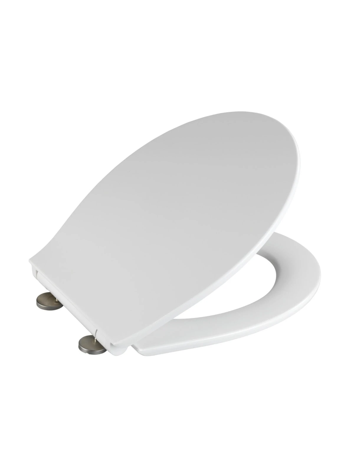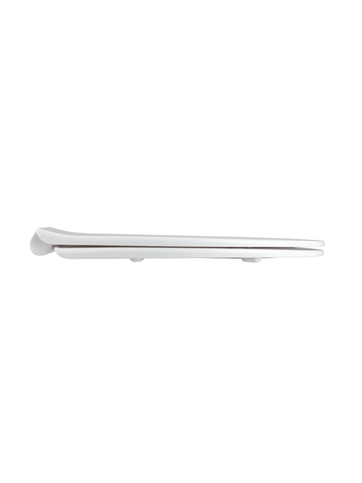 – Extra flacher WC-Sitz aus hochwertigem Duroplast mit ovaler Deckelform im klassischen Weiß