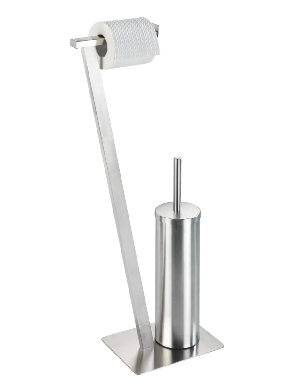 – Lieferumfang: 1 x Stand WC-Garnitur Lirio, Toilettenpapier-Rollenhalter mit Bürstenhalter von WENKO, aus rostfreiem Edelstahl, Maße (B x H x T): 15 x 68,5 x 30 cm