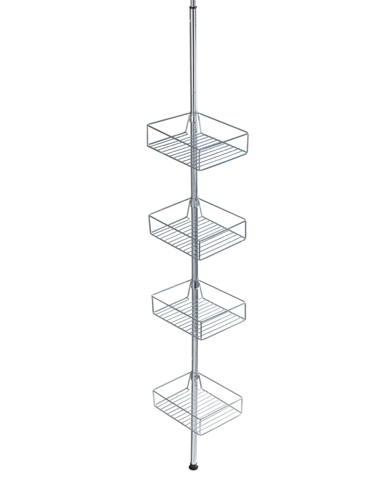 Das hochwertige Teleskop-Eckregal Domaso aus rostfreiem Edelstahl bietet mit vier rechteckigen Drahtablagen zahlreiche Abstellmöglichkeiten für Shampoo, Duschbad, Seife, Schwamm und andere Badeutensilien. Die extra-tiefen Drahtkörbe halten die Pflegeutensilien sicher und griffbereit.