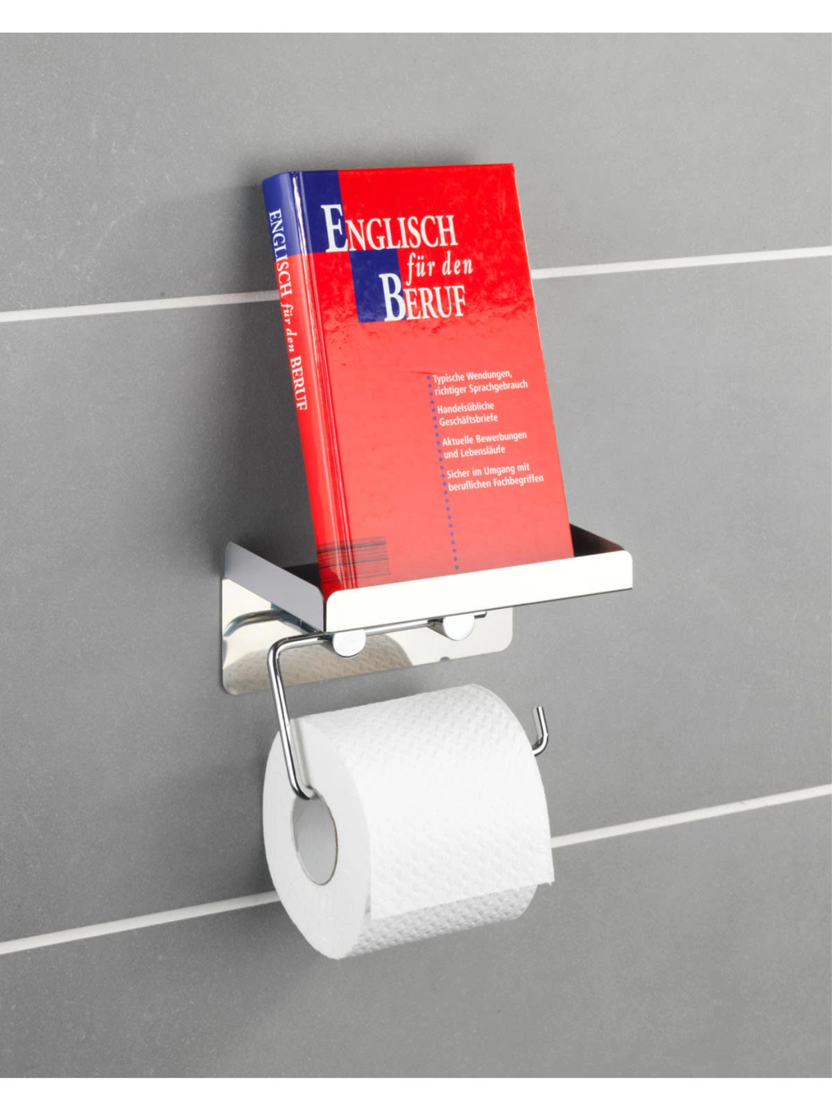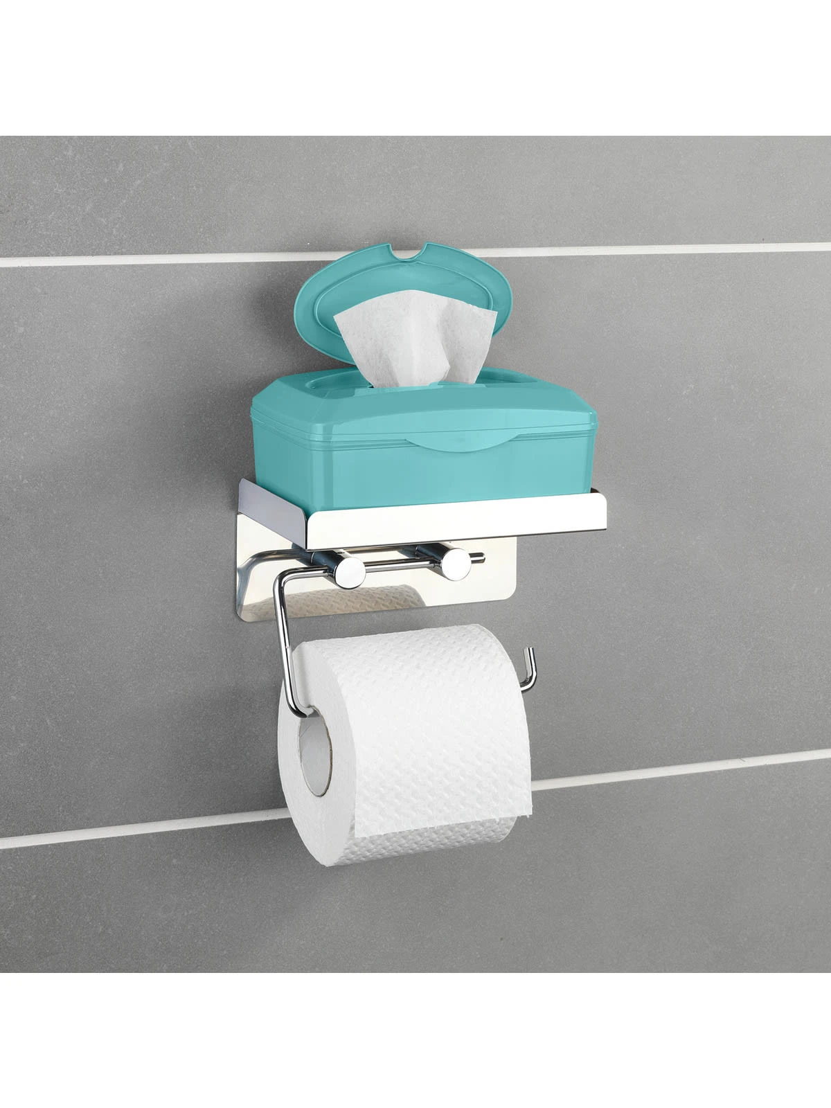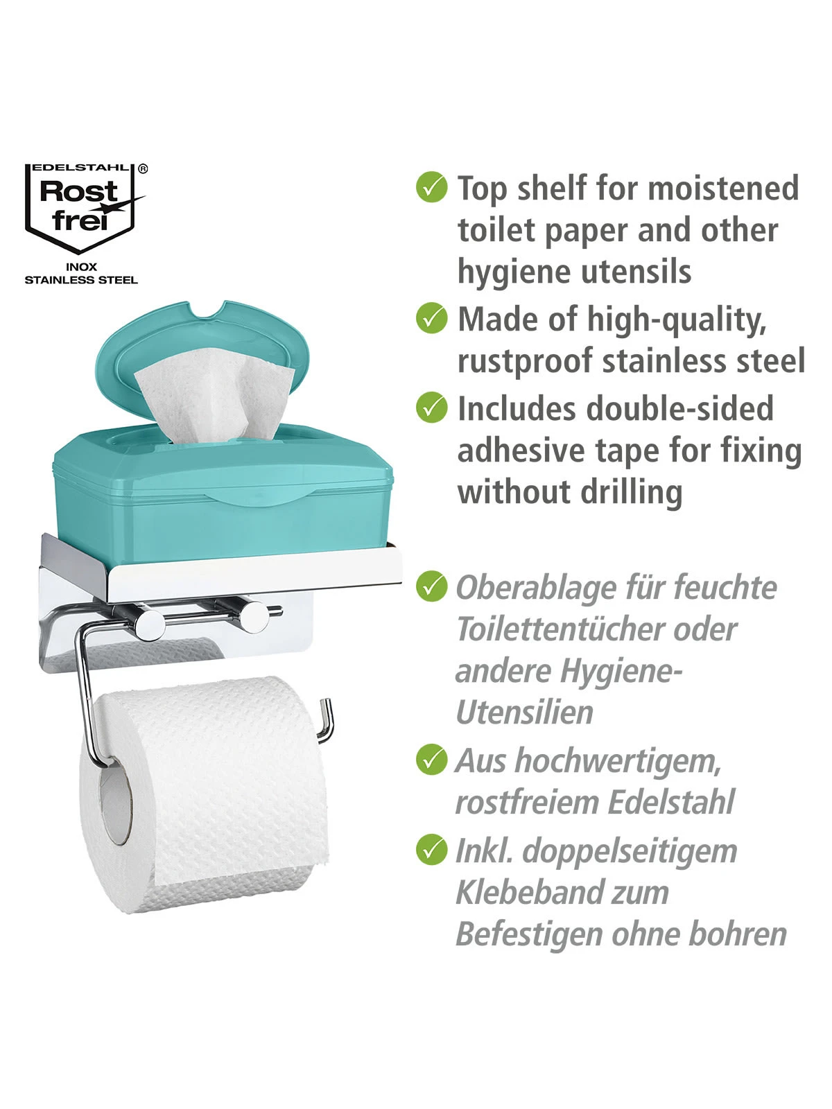 Der Toilettenpapierhalter ist aus hochwertigem, rostfreiem Edelstahl gefertigt und mit einer zusätzlichen Oberablage für feuchte Toilettentücher oder andere Hygiene-Utensilien ausgestattet. So werden Feuchttücher, etc. immer elegant und diskret aufbewahrt. Die praktische Ablage ist rutschhemmend beschichtet und für alle handelsüblichen Feuchttücher geeignet.