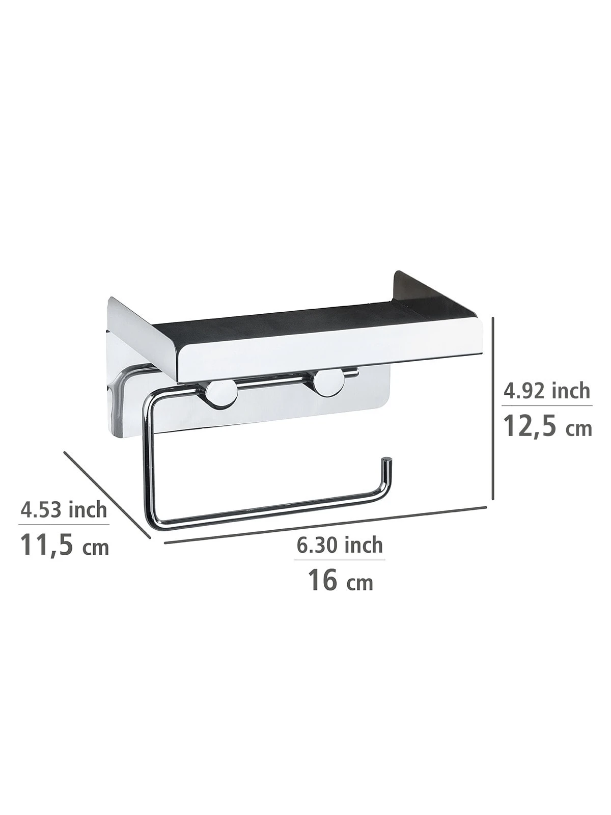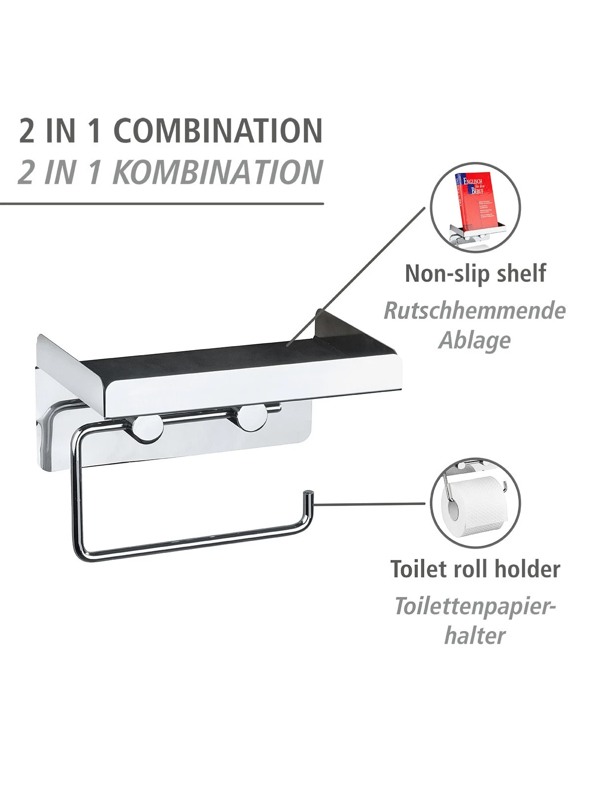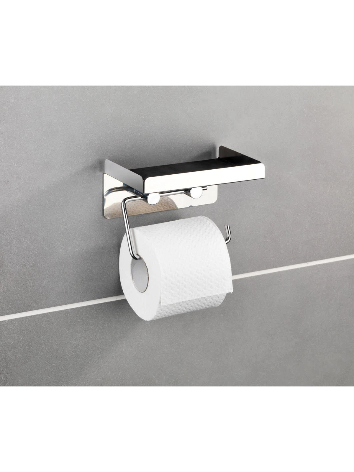 Der Toilettenpapierhalter ist aus hochwertigem, rostfreiem Edelstahl gefertigt und mit einer zusätzlichen Oberablage für feuchte Toilettentücher oder andere Hygiene-Utensilien ausgestattet. So werden Feuchttücher, etc. immer elegant und diskret aufbewahrt. Die praktische Ablage ist rutschhemmend beschichtet und für alle handelsüblichen Feuchttücher geeignet.