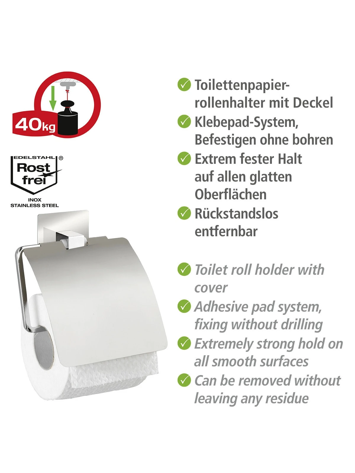 Der Toilettenpapierrollenhalter mit Deckel aus rostfreiem Edelstahl hält das Toilettenpapier in Bad und Gäste-WC stets griffbereit. Die Rolle wird einfach auf den Halter aufgesteckt und kann ganz einfach ausgewechselt werden.