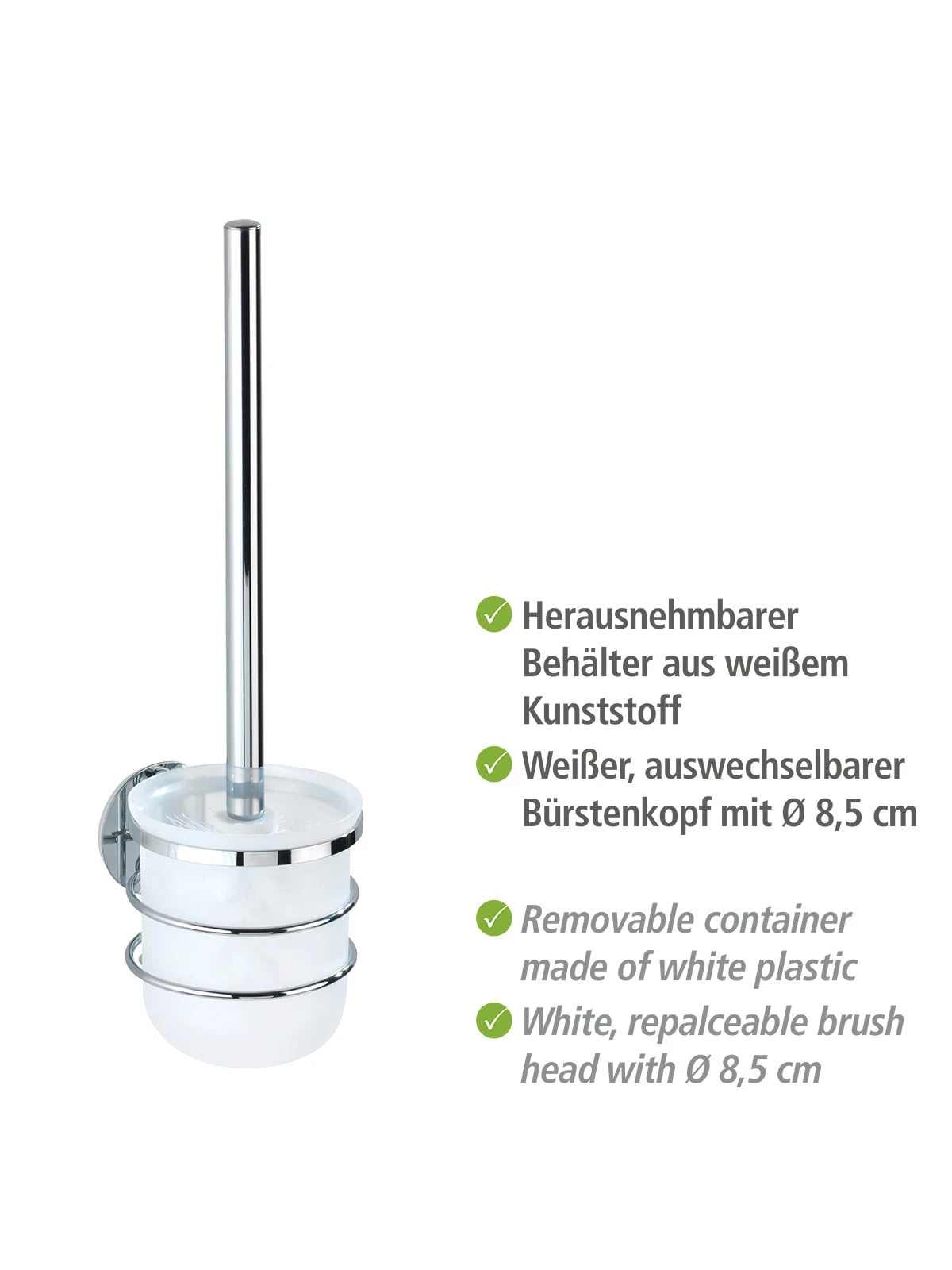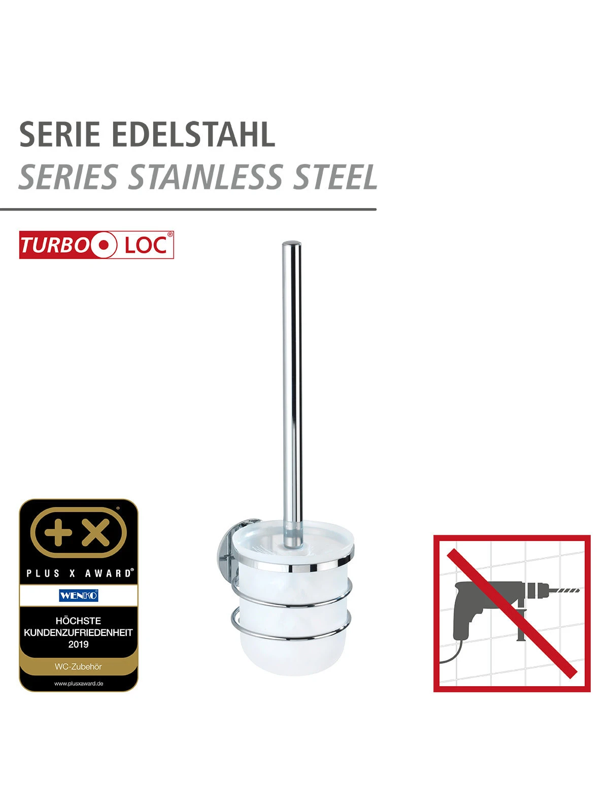 Die dekorative Turbo-Loc WC-Garnitur zeichnet sich durch hochwertige Qualität durch rostfreiem Edelstahl aus. Der dekorative Edelstahl-Halter ist aus besonders massiver Qualität hergestellt. Der abnehmbare Kunststoffeinsatz hält die Bürste stets dekorativ griffbereit. Die WC-Bürste mit auswechselbarem, weißem Bürstenkopf von Ø 8,5 cm ist im Lieferumfang enthalten.