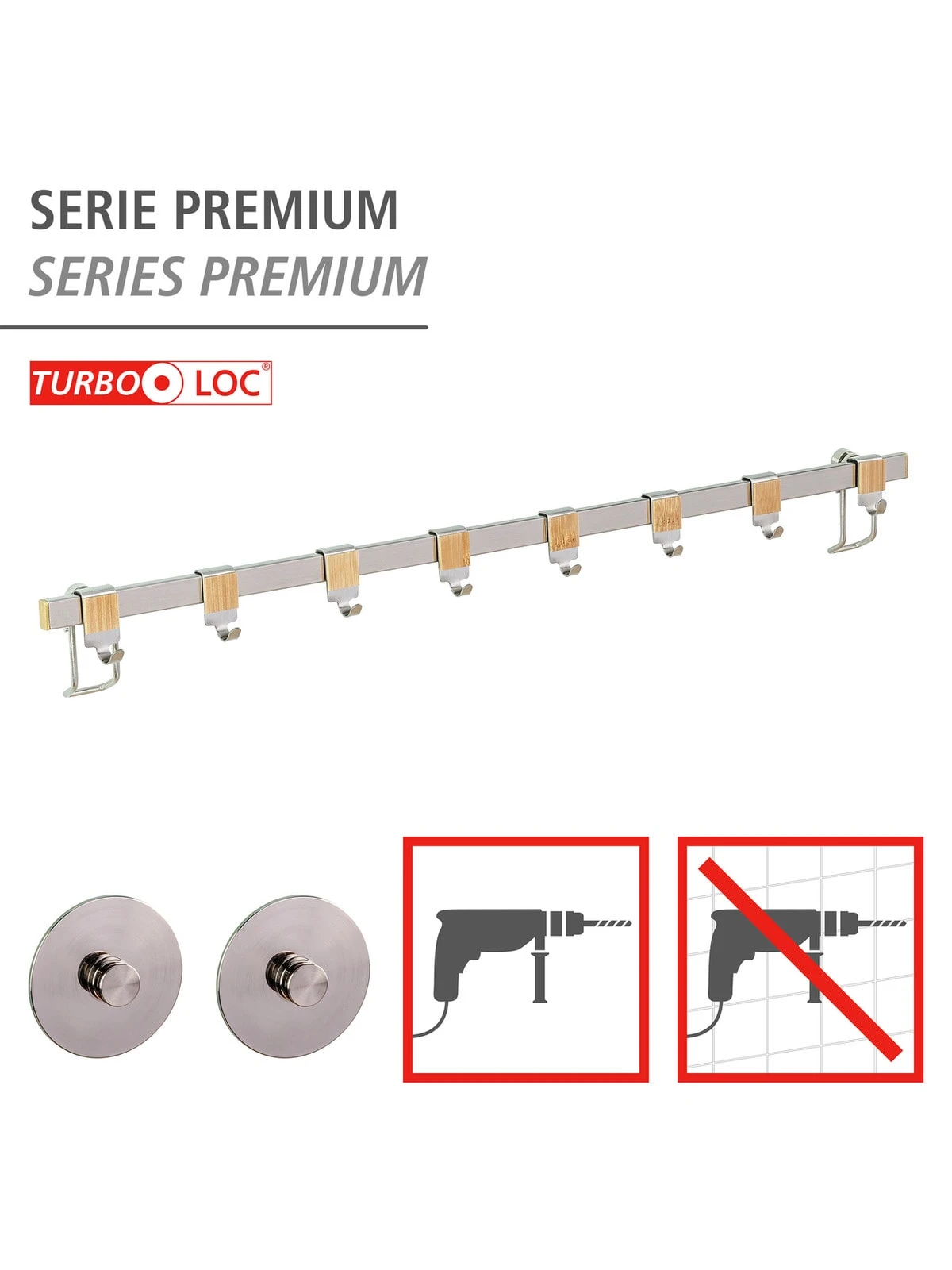– Befestigen mit oder ohne bohren: Für die Wandmontage sind Schrauben und Dübel sowie zwei silberne Turbo-Loc® Adapter zur Befestigung ohne bohren enthalten.