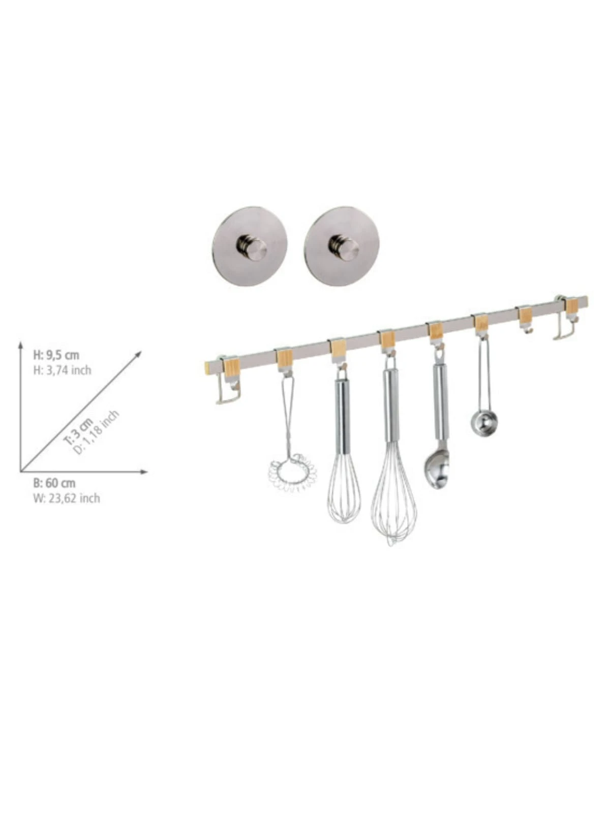 – Optimale Maße: Mit ihren Maßen von (B x H x T): 60 x 4 x 2,5 cm hat die Hängeleiste die ideale Größe für eine Wandbefestigung in jeder Küche