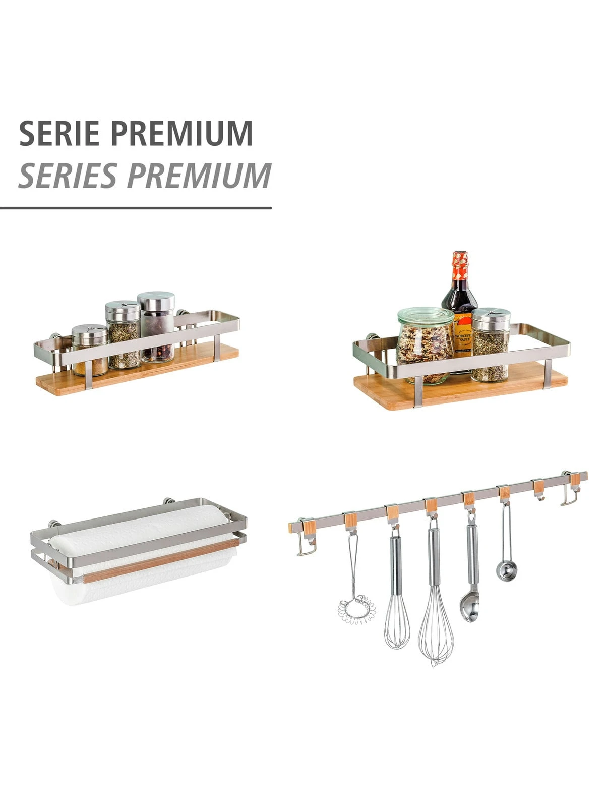 Upgrade für Ihre Küche: Mit den weiteren Küchen-Accessoires der Premium-Serie wie dem Küchenrollenhalter, Universalregal und Gewürzregal verleihen Sie Ihrem Lieblingsort einen einheitlichen, topaktuellen Look.