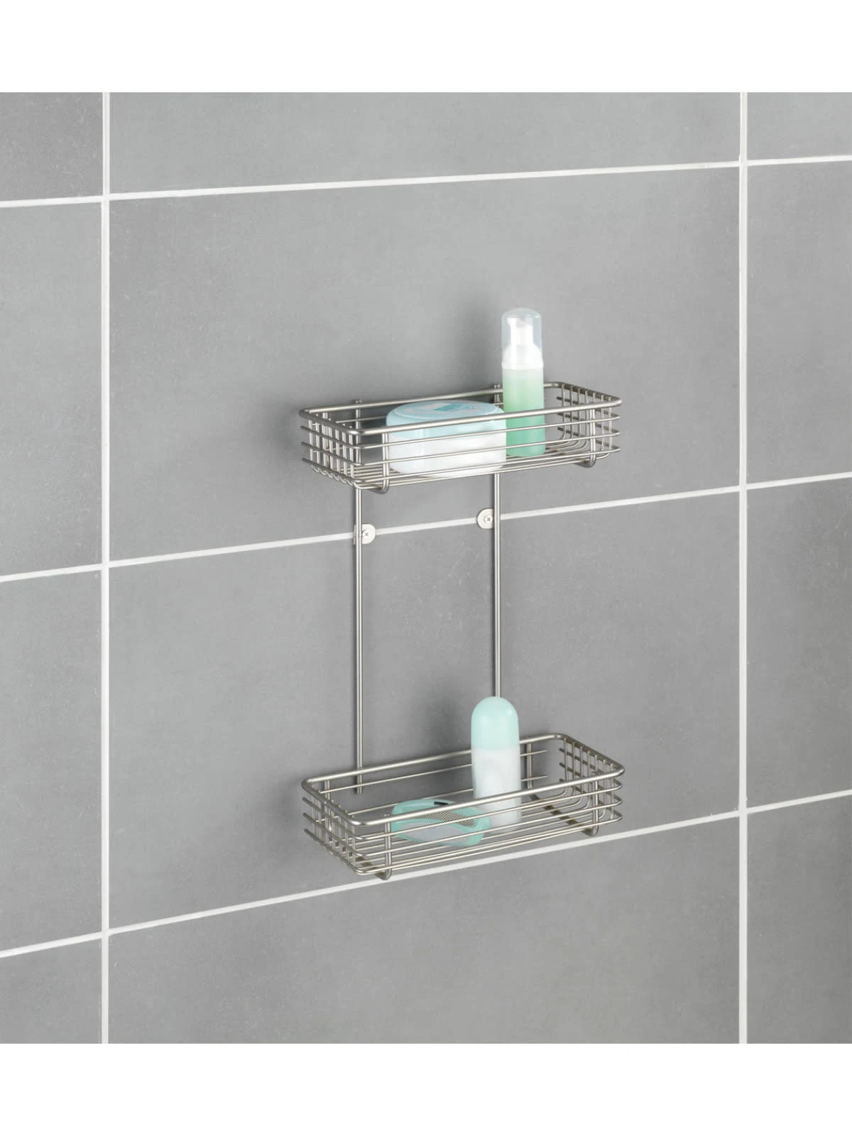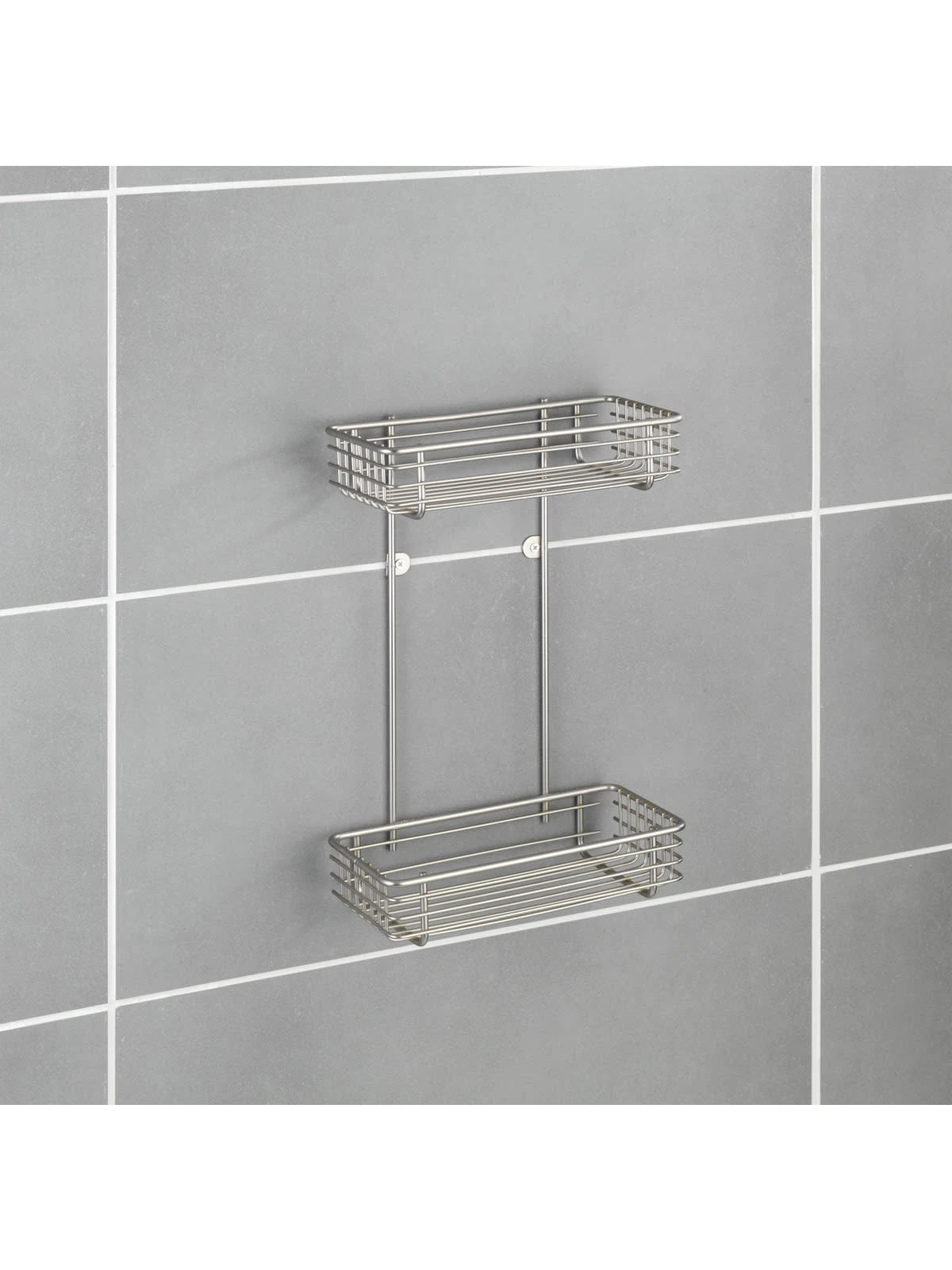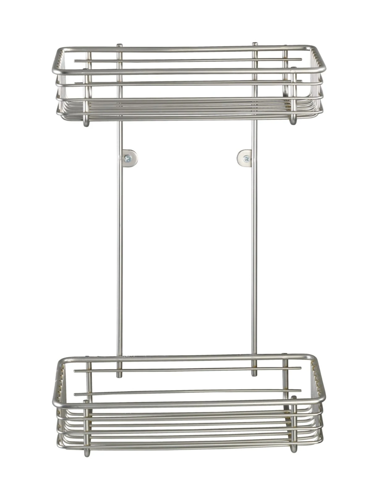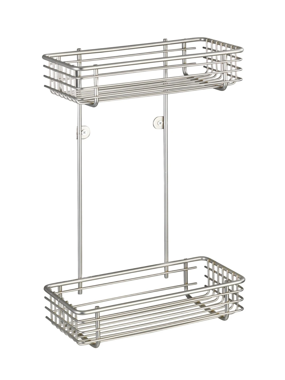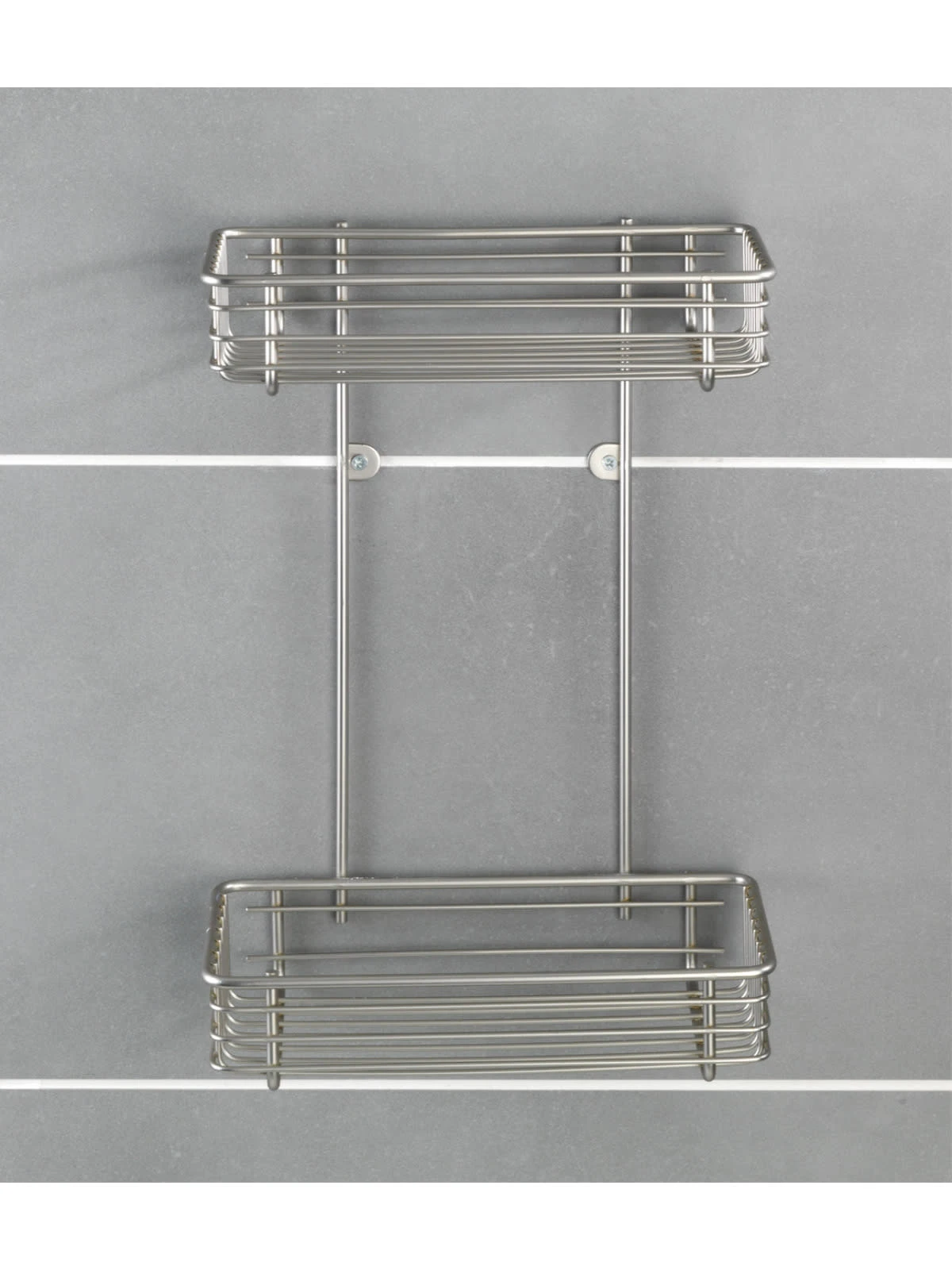 Hergestellt ist das praktische Regal aus besonders schwerer und massiver Chrom-Qualität. Es hält auf zwei geräumigen Etagen alles griffbereit, was für das tägliche Wohlbefinden im Bad wichtig ist. Die beiden satinierten Ablageflächen bieten platzsparend viel Stauraum.