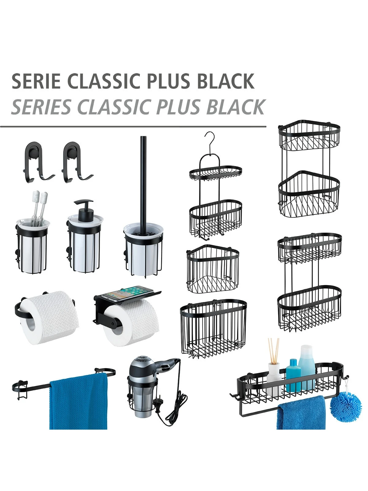 Die Bad-Accessoire Serie Classic Plus Black aus Stahl ist mit einer schwarzen Spezial-Beschichtung versehen, die hochwertigen Rostschutz bietet.