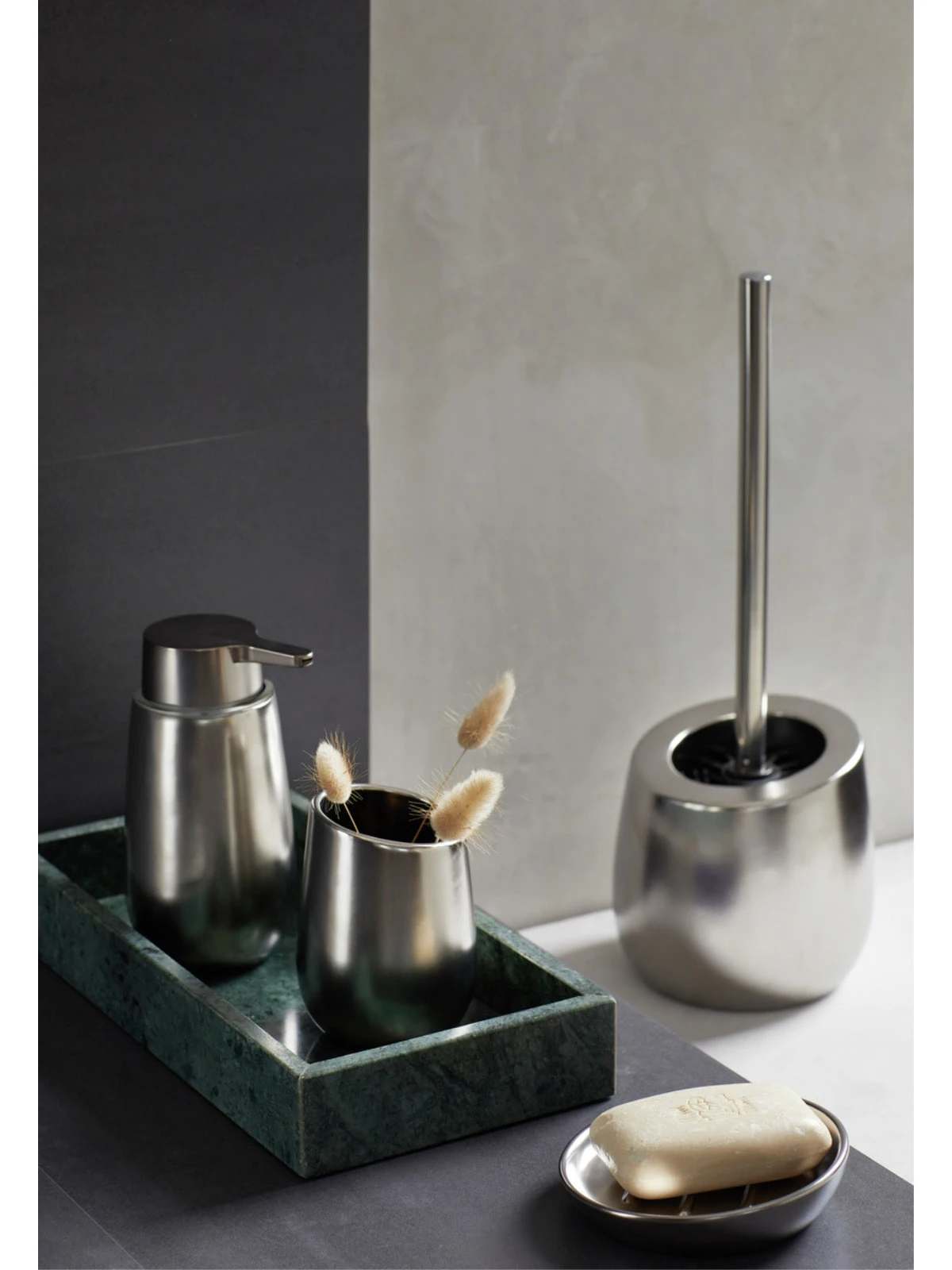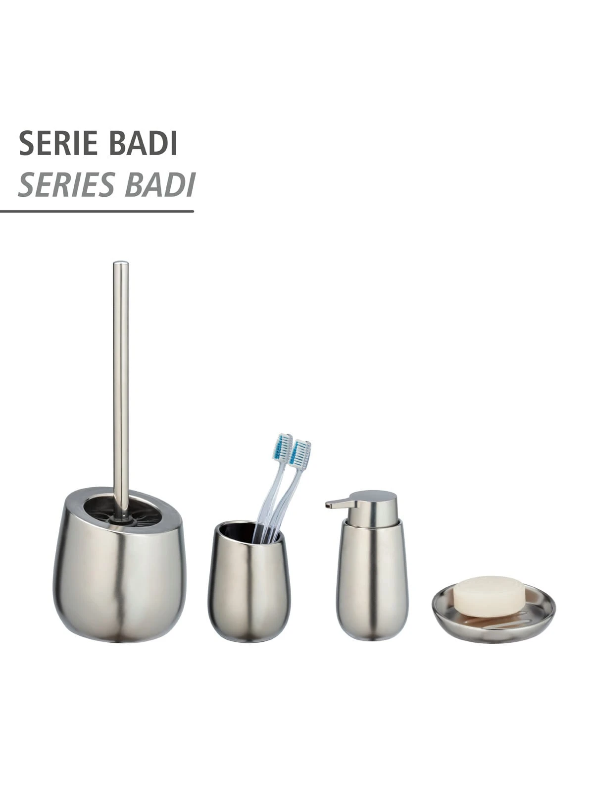Ergänzend zur WC-Garnitur Badi bietet WENKO auch den passenden Seifenspender und Zahnputzbecher sowie die Seifenablage an. So verleihen Sie Ihrem Bad einen neuen Lifestyle.