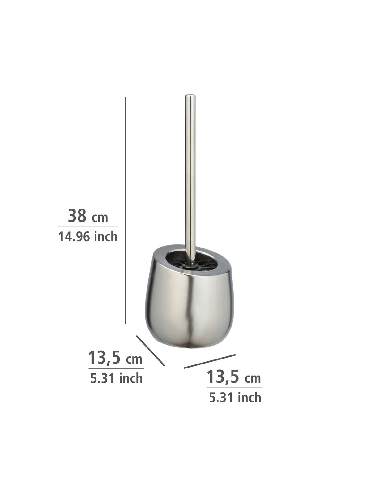 Im edlen Chrom-Gewand mit matter Oberfläche wird die WC-Bürste Badi zu einem Blickfang in jedem Badezimmer und Gäste-WC.