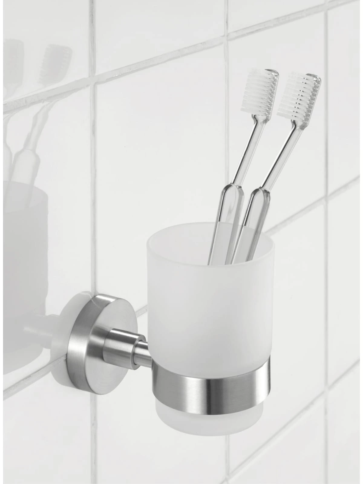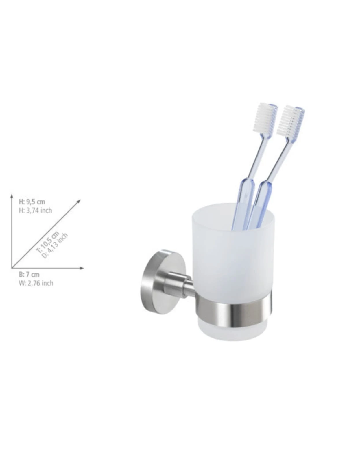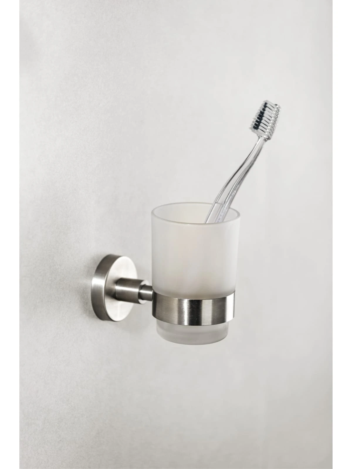 Der praktische Zahnputzbecher ist abnehmbar und ist aus satiniertem Glas hergestellt. Er bietet Platz für Zahnbürsten und Zahnpasta und hält diese stets an gewünschter Stelle griffbereit.